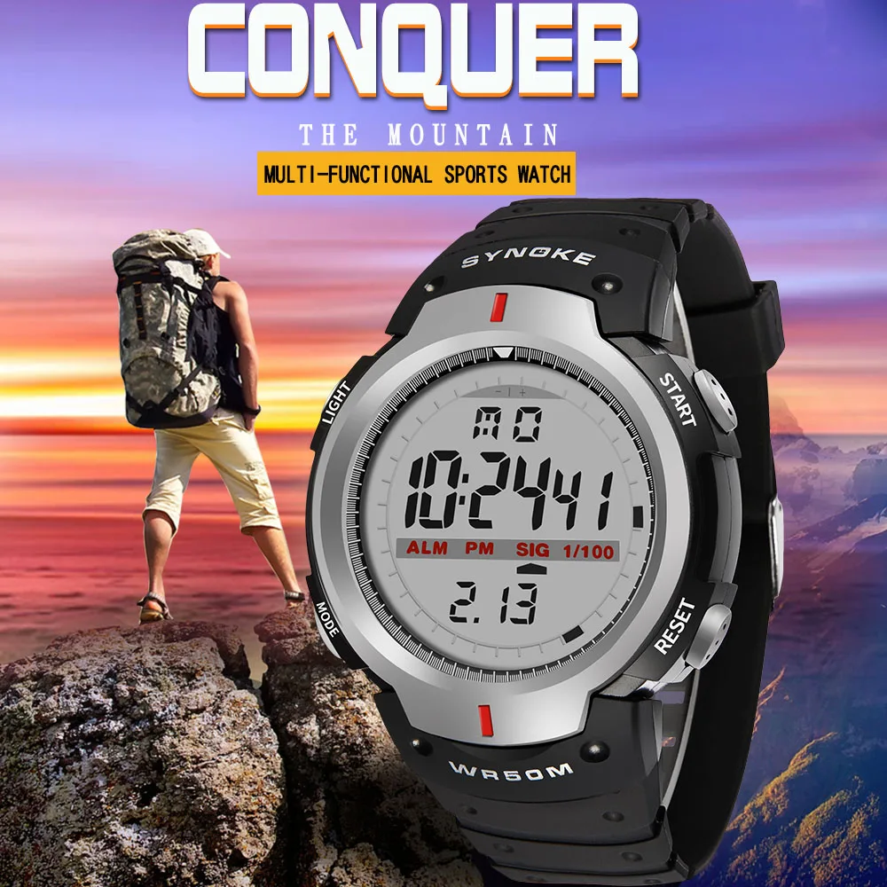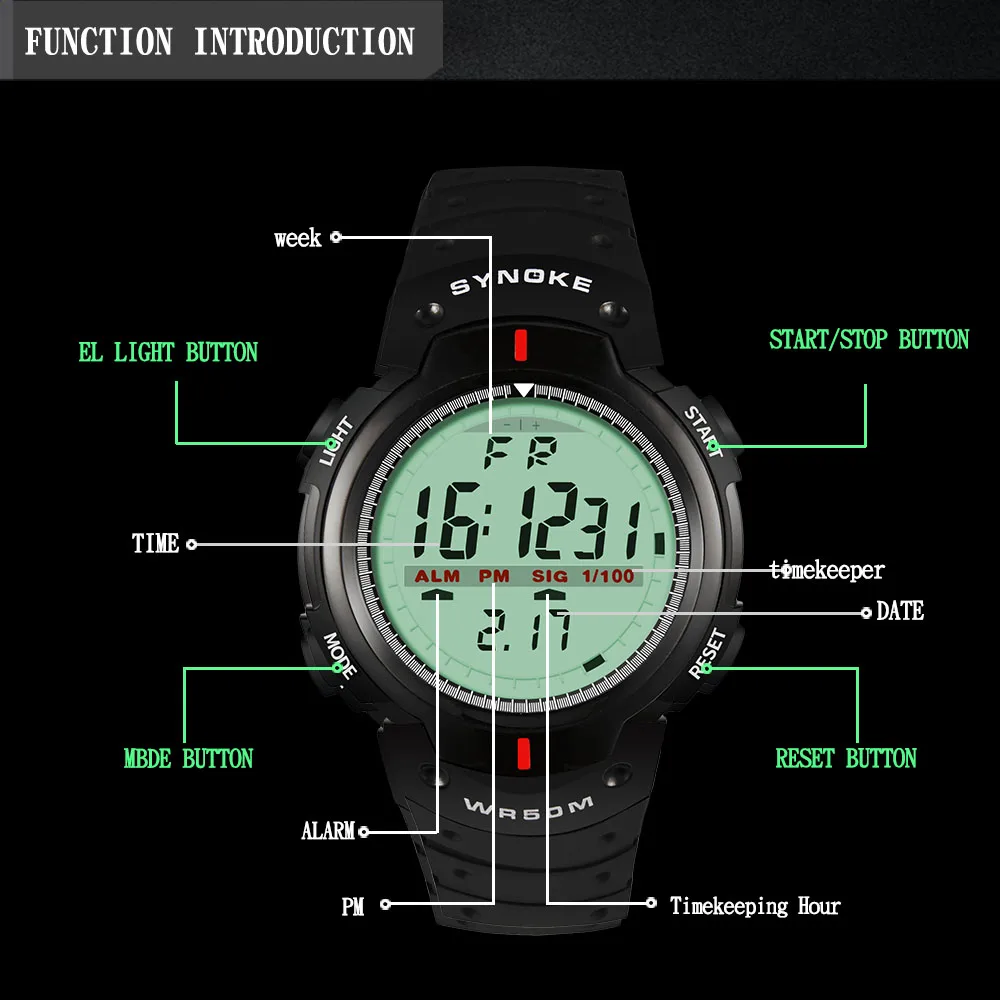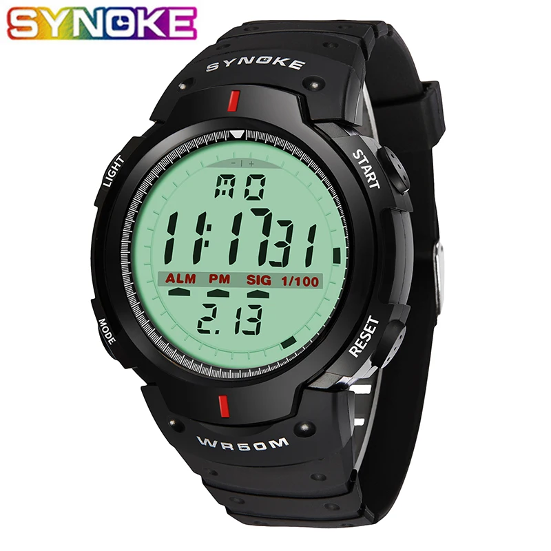 Часы наручные SYNOKE мужские электронные в стиле милитари, модные цифровые водонепроницаемые светодиодные, для спорта на открытом воздухе, с будильником