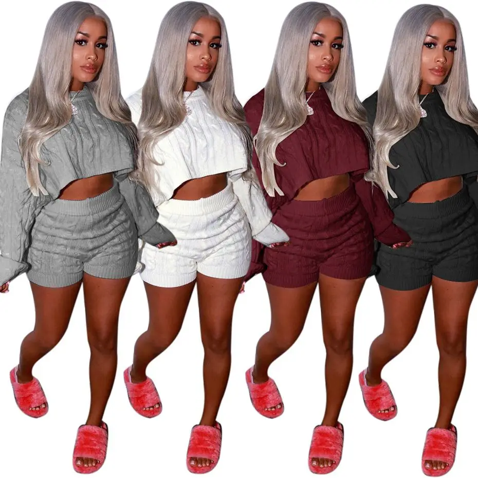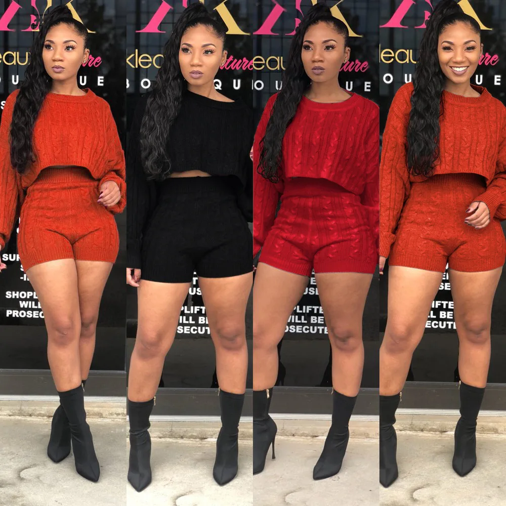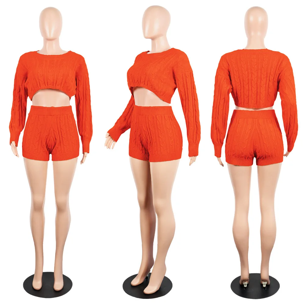 Женский комплект из двух предметов HAOYUAN, сексуальный клубный костюм, свитер, укороченные топы и велосипедные шорты, вязаная одежда, спортивный костюм, комплект из двух предметов
