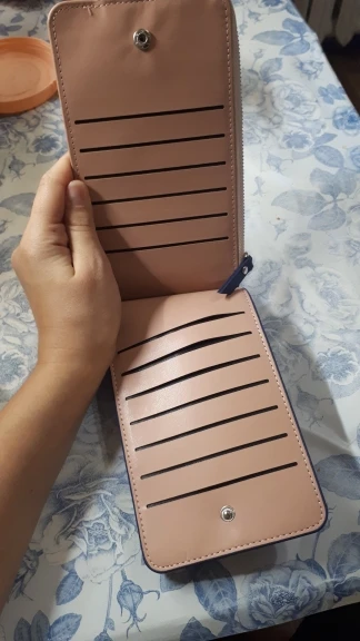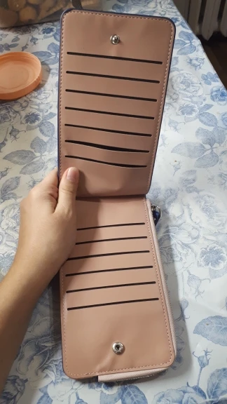 кошелек хороший, но очень большой, не ожидала что настолько большой. полез телефон самсунг 8+ в кармашек с замком.