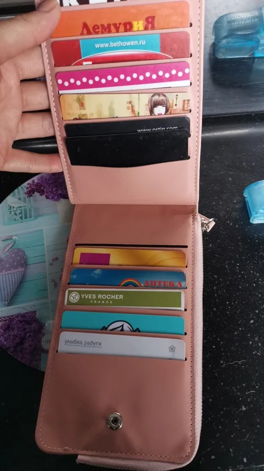 Ура! Наконец-то получила! Доставка быстрая, просто очень уж ждала этот заказ. Уже сложила по кармашкам все свои дисконтные карточки, которым не хватило кармашка - положила под молнию. Очень довольна этим заказом и безумно нравится этот товар. Теперь в сумочке порядок! Спасибо продавцу, рекомендую.