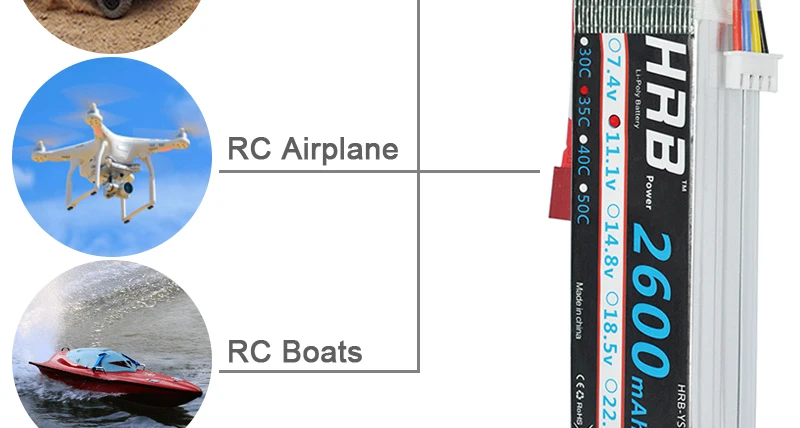 Аккумулятор HRB 6S XT60 22,2220018002600330040005000600010000120001...
