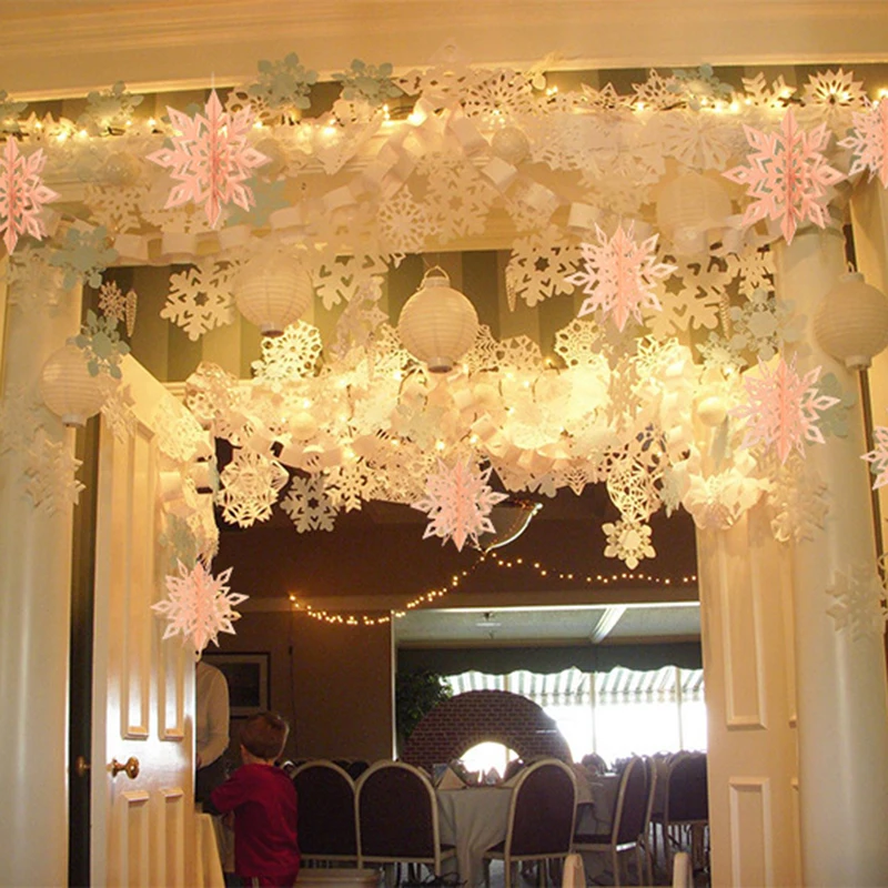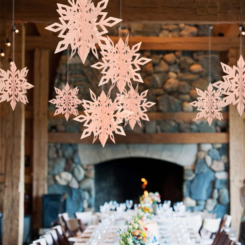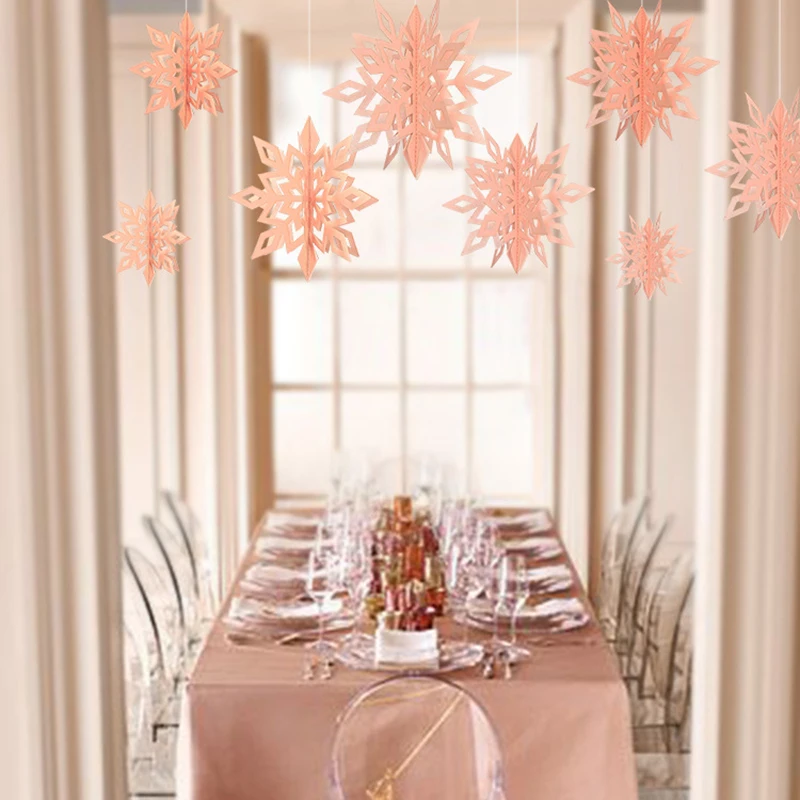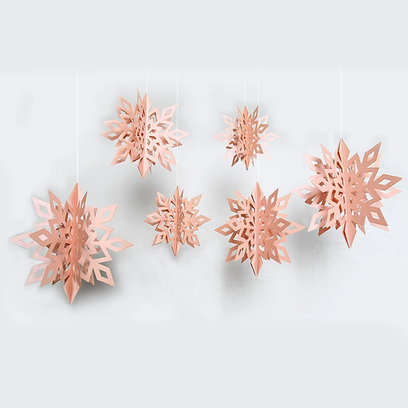 6 шт.компл. WhitрозовыйЗолотой картон трехмерная Снежинка подвесной...