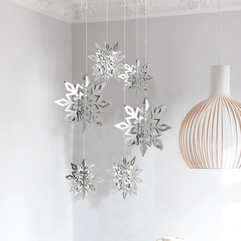 6 шт./партия рождественские украшения 3D полый картон Снежинка Висячие украшения подвеска Новогодние декоративные вечерние украшения для дома 35