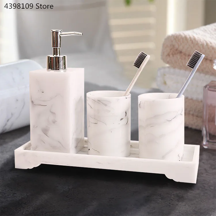 Принадлежности для ванной комнаты, аксессуары из смолы с мраморной текстурой для ванной комнаты, с диспенсером, держателем для зубных щеток, дозатором для мыла, туалетные принадлежности для ванной комнаты