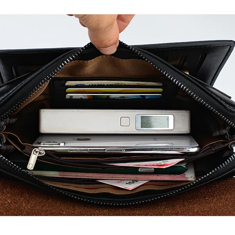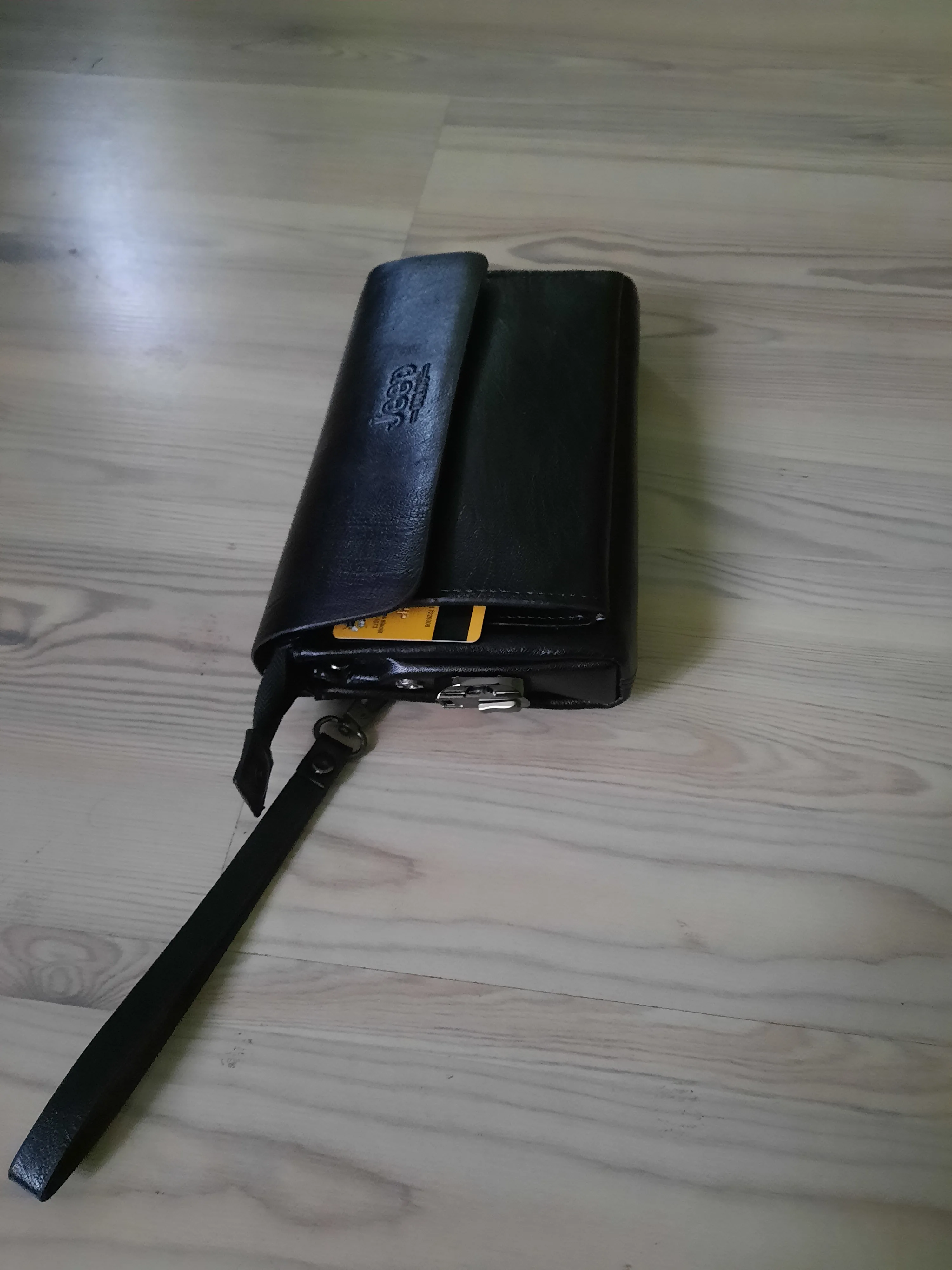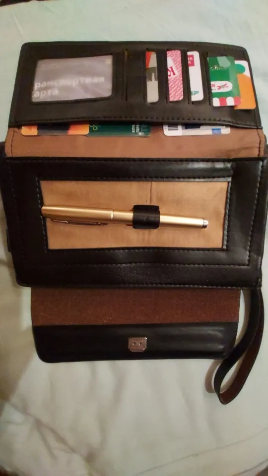 Спасибо продавцу за быструю доставку. Что касается клатча, то покупал из-за увеличенного размера, но он оказался менее вместительный чем стандартного размера. Недостатки модели: -при открывании клапана, лицевая сторона где прорези для визиток ничем не удерживается и отваливается; -передняя стенка под клапаном используется только под шариковую ручку и очень толстую; -Внутренние отделения на молнии очень мелкие, документы не помещаются; -ремешок для руки должен быть с другой стороны клатча. Одно преимущество - красивая внешность и качественная работа.