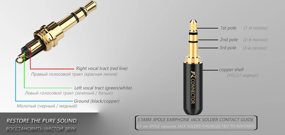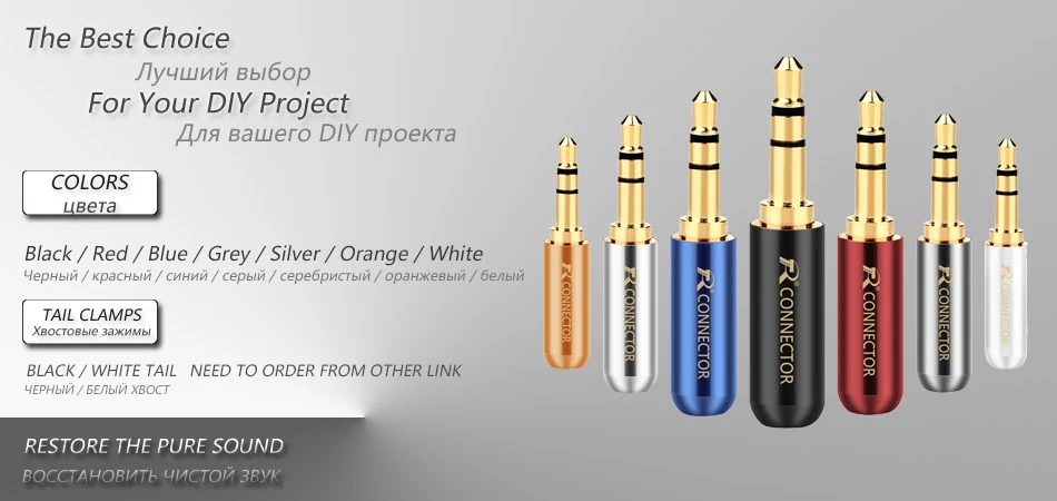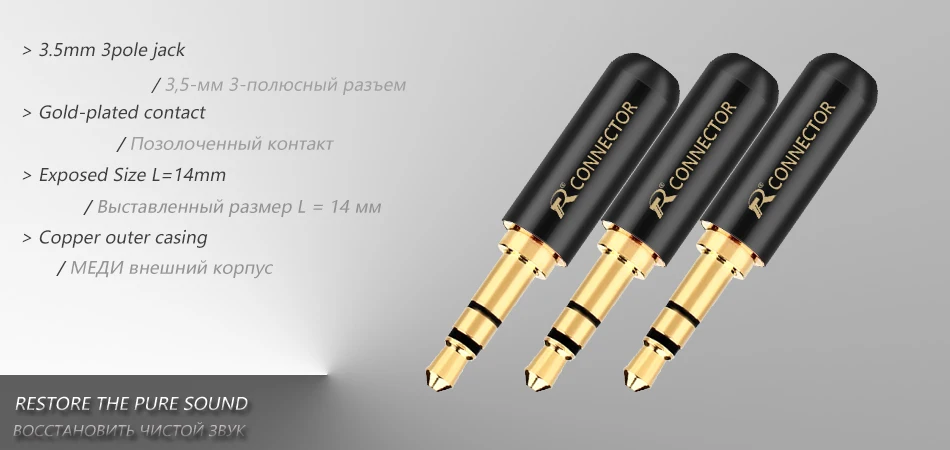 10 шт.лот медный аудиоразъем 3,5 мм 3-полюсный стерео разъем позолоченный разъем для наушников 3,5 мм штекер с хвостовой вилкой