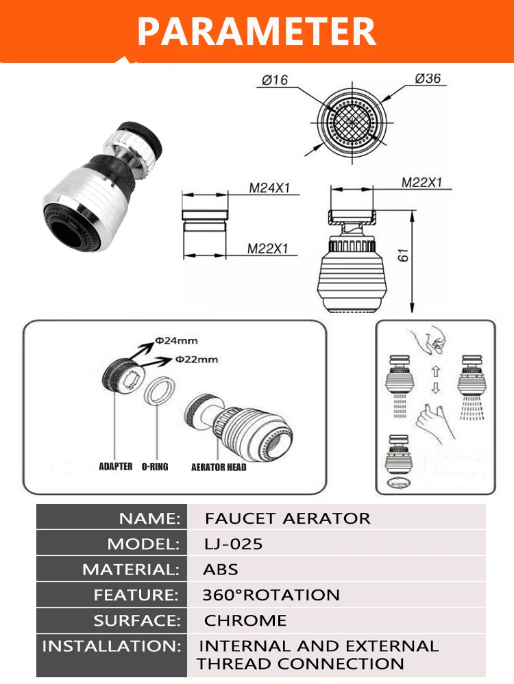 ZhangJi 360 градусов кухонный кран аэратор 2 режима регулируемый фильтр для воды диффузор водосберегающий распылитель на кран соединитель для душа