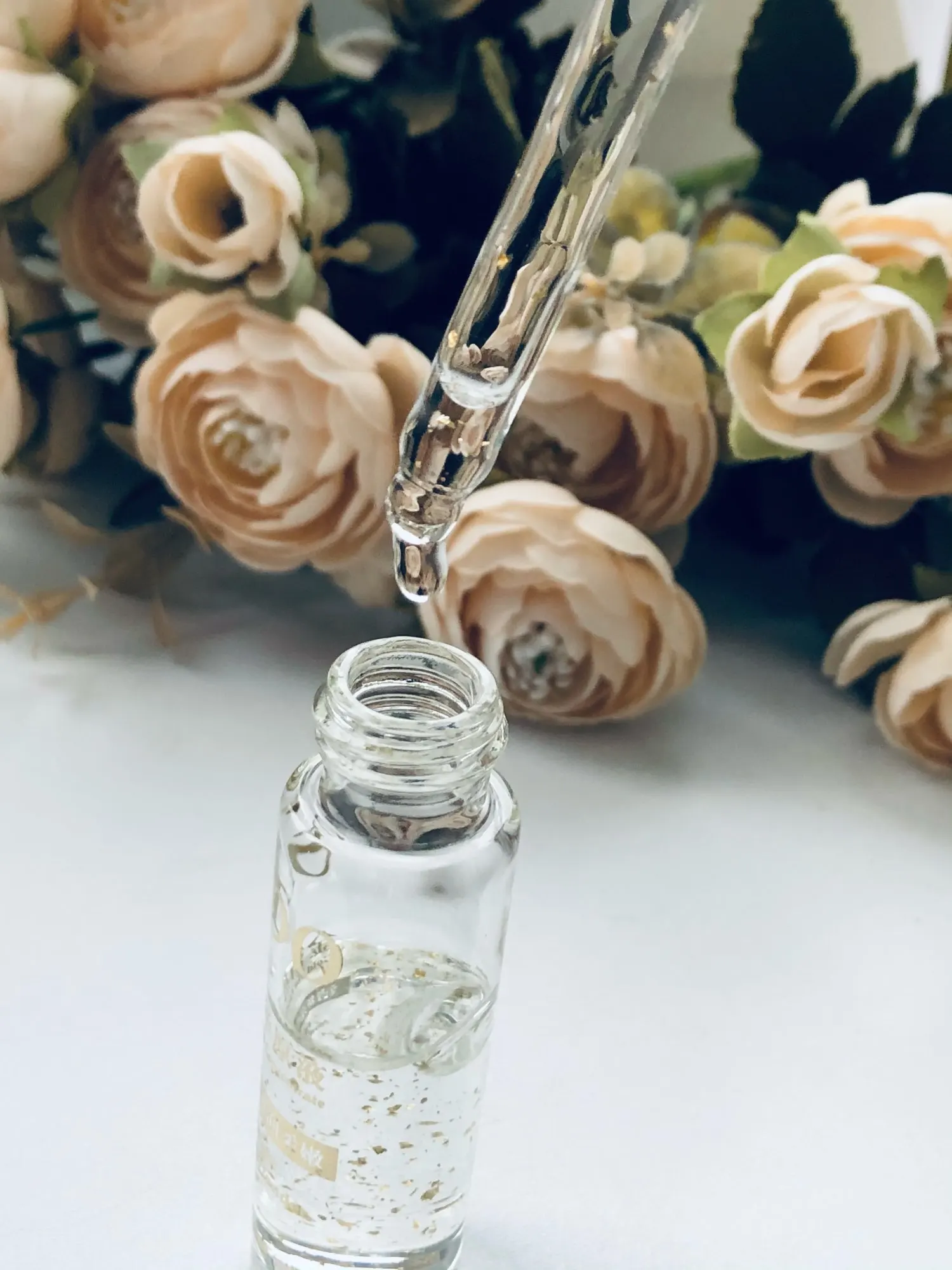 Сыворотка с золотыми частичками. Очень удобный формат с пипеткой. Расходимся минимальный - пару капель. Консистенция легкая, гелевая. Запаха практически нет. Мне нравится, увлажняет неплохо. Кожа не липкая и немного становится матовой. А так же она красиво смотрится на туалетном столике))