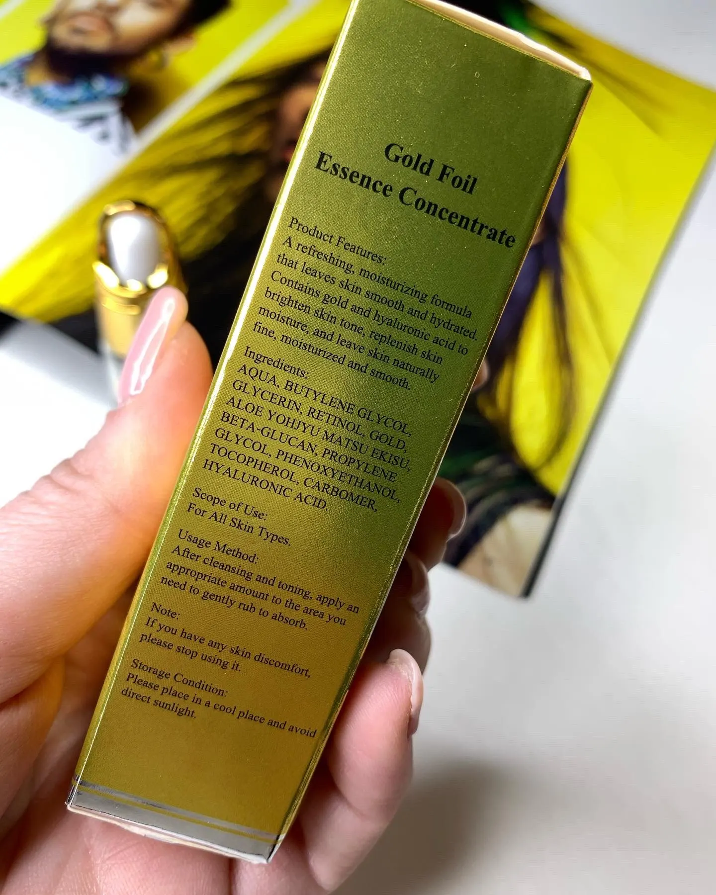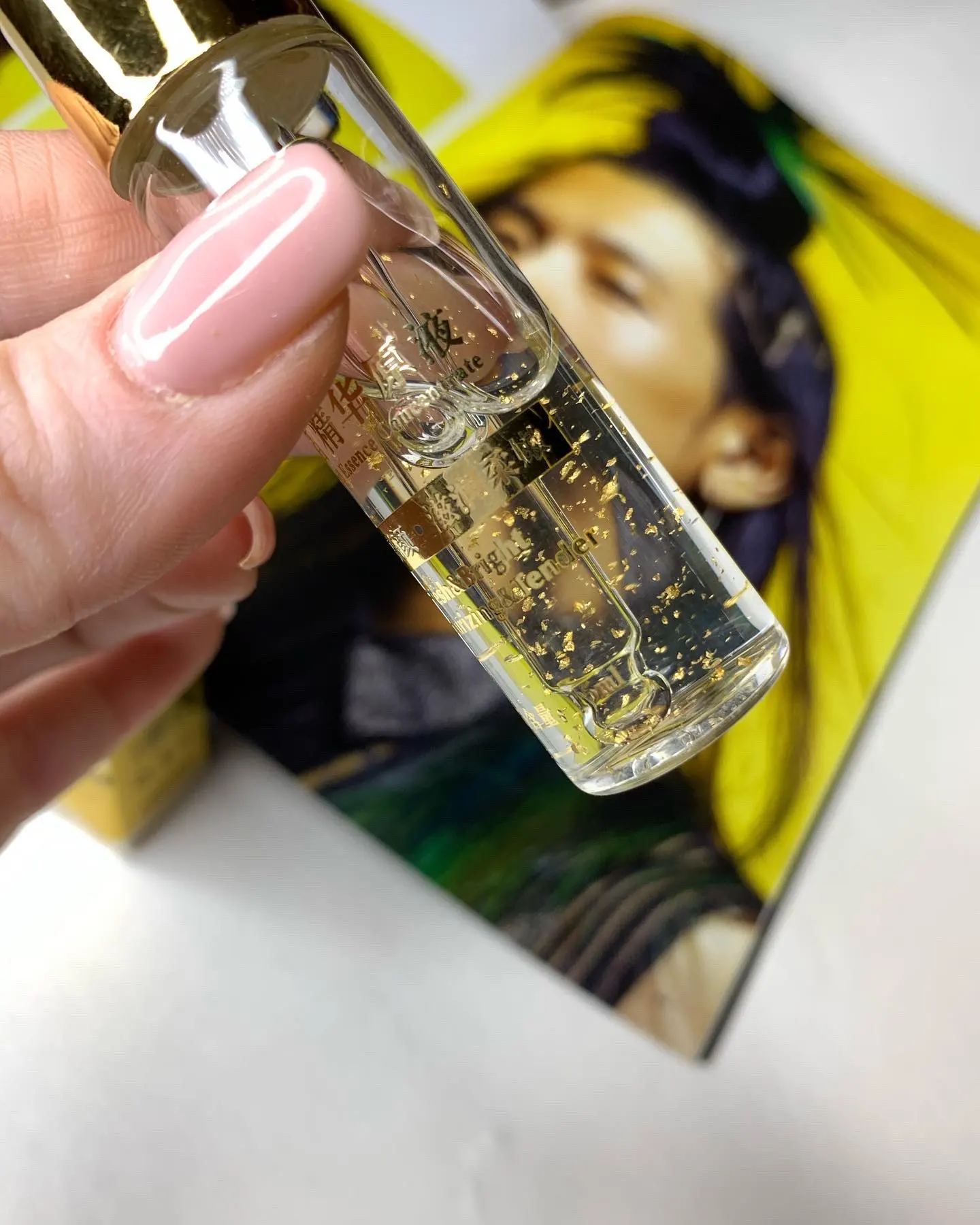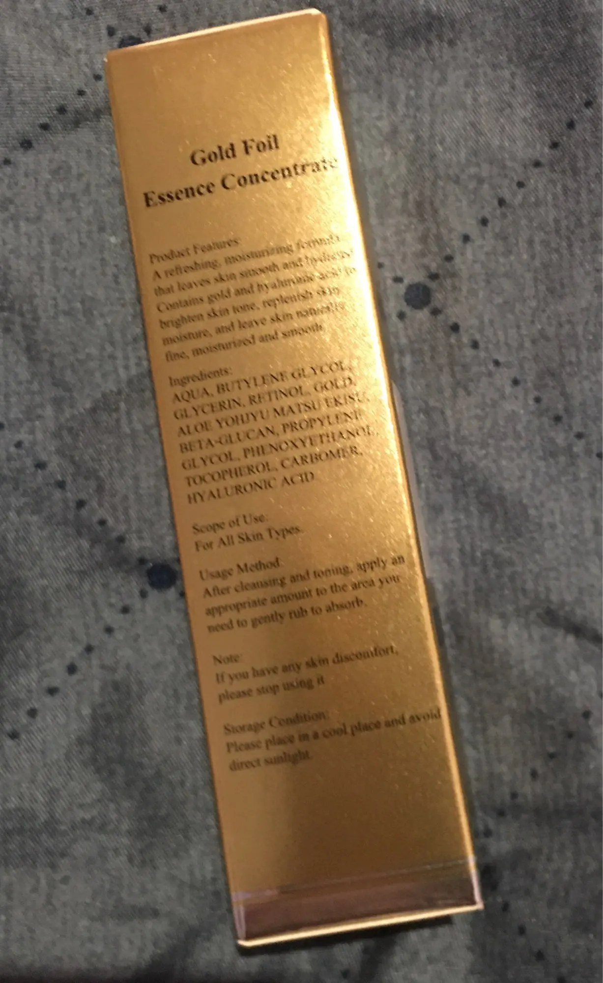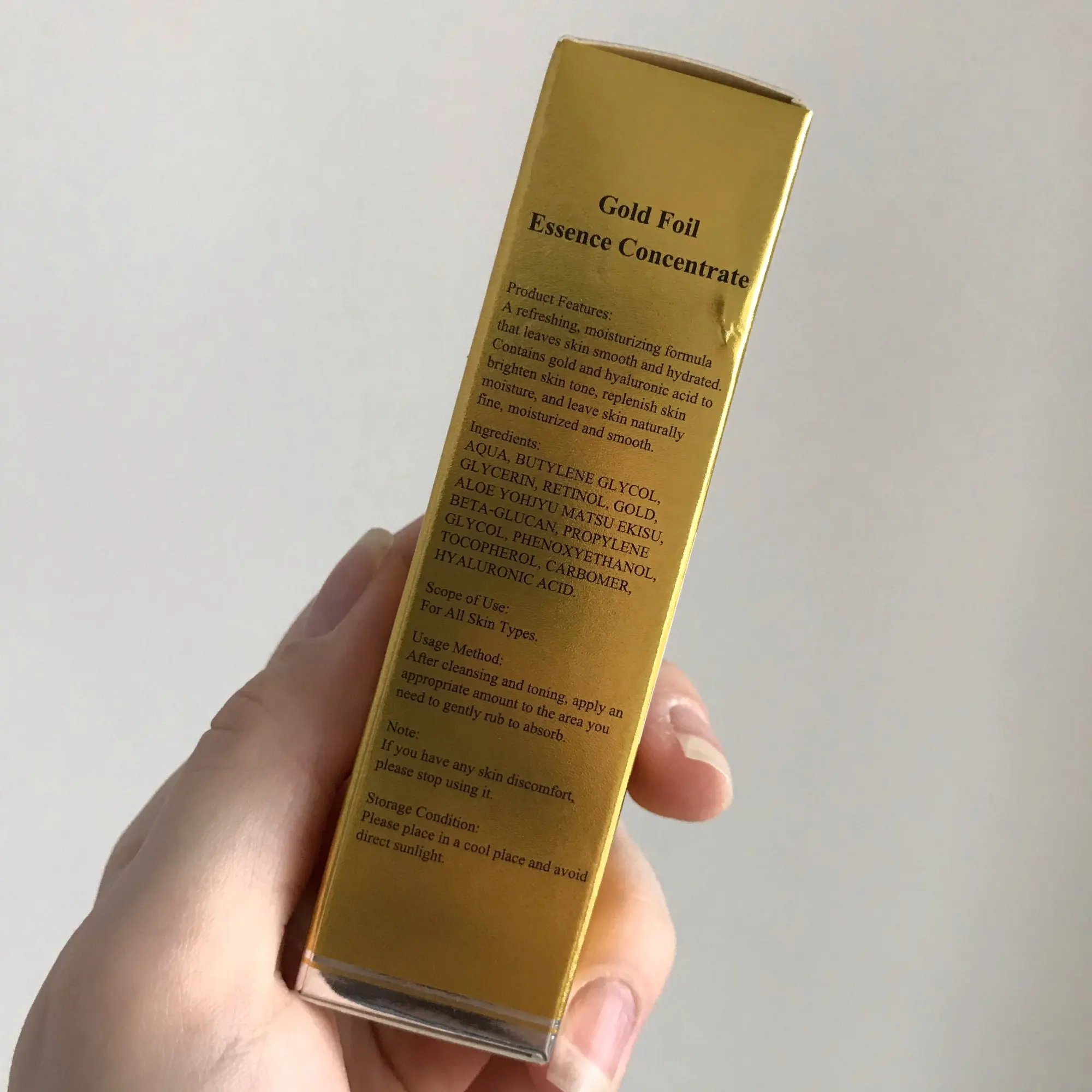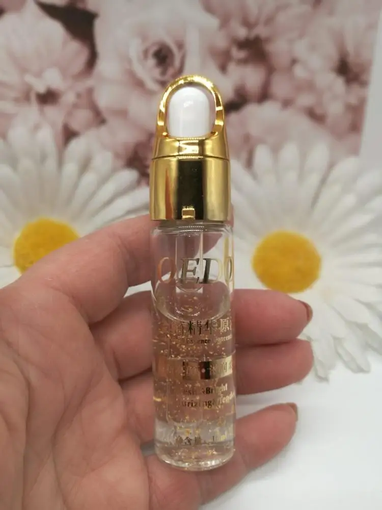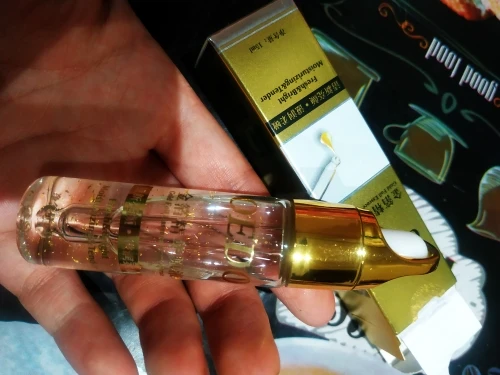 Делает кожу гладкой, шелковистой, придает увлажнение, выравнивания и осветляет тон лица. Посылка добиралась месяц. Несколько средств упакованы в картонную коробку и обычный почтовый пакет. Само средство в фирменной коробочке на которой указана вся необходимая информация на английском и китайском языках. Само средство находится в стеклянной бутылочке, ничем не пахнет. По консистенции жидкое, немного гелеобразное. Содержит золотые частички. При втирании блеска не оставляет. Использую не на все лицо, а только под глаза. Так как кожа у меня комбинированная. Средство мне очень нравится! Кожа под глазами перестала сохнуть и тон стал лучше. #рекомендую