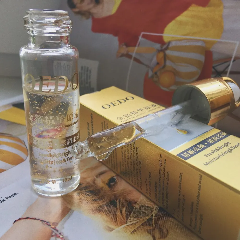 Сыворотка от OEDO c гиалуроновой кислотой и золотыми частичками. Эта сыворотка у меня в приоритете. Частенько ее заказываю. Она отлично питает и увлажняет кожу. Слегка отбеливает. Наношу или просто не сколько капель. На подушечки пальцев массажными движениями. Или добавляю в крема. После нанесения и полного впитывания не остается блеска на коже. Отличная сыворотка. Доставка меньше двух недель. Отлично упакована. Рекомендую эту сыворотку. А также средства от этого производителя.