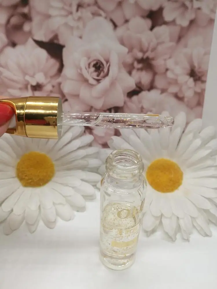 Сыворотка устраняет мелкие морщинки и темные круги под глазами. А входящие в ее состав, золотые частички улучшают обмен веществ и устраняют воспалительный процесс. Пользуюсь данной сывороткой уже давно. Мне она очень нравится. Наносится легко и быстро впитывается.