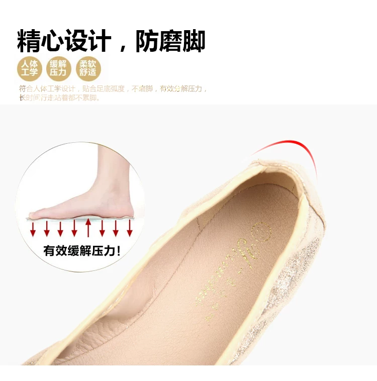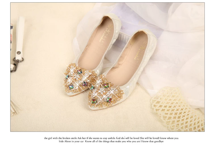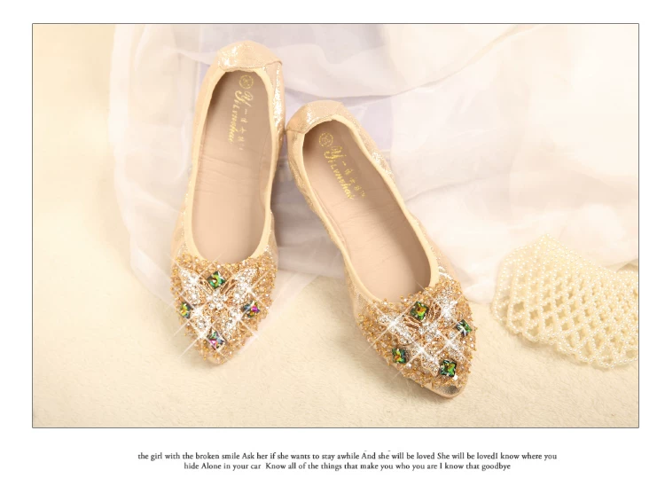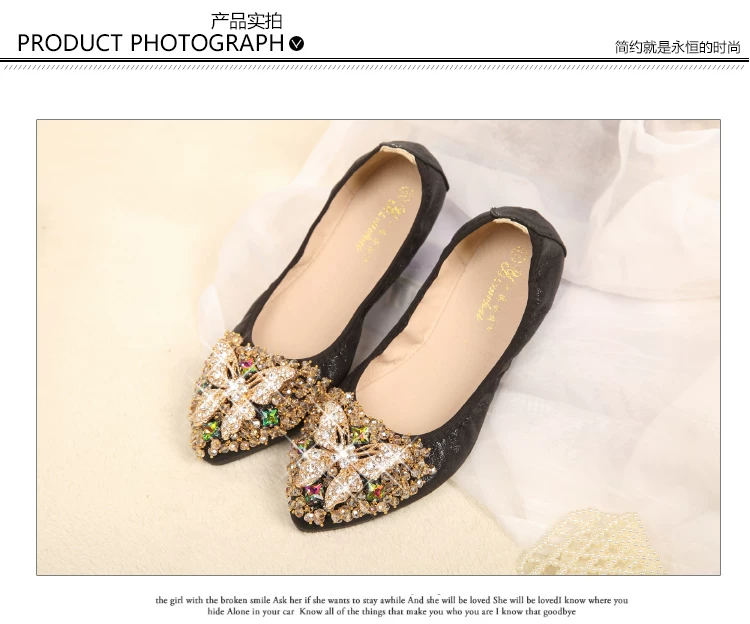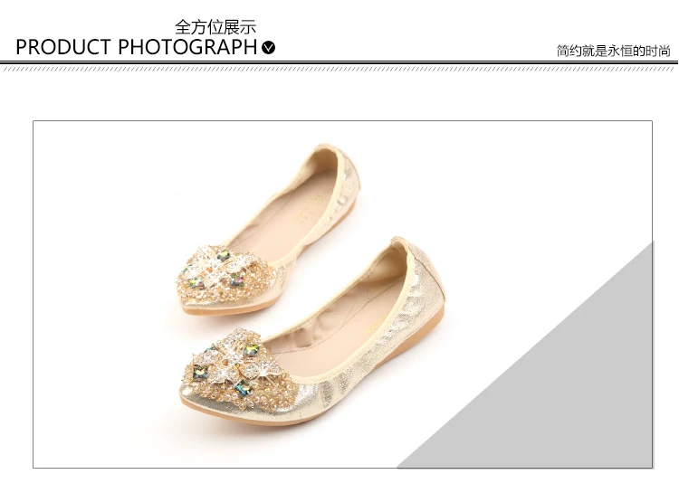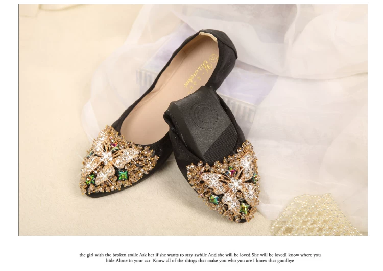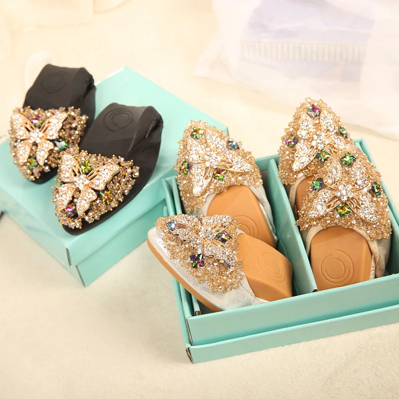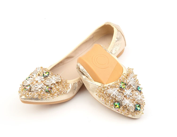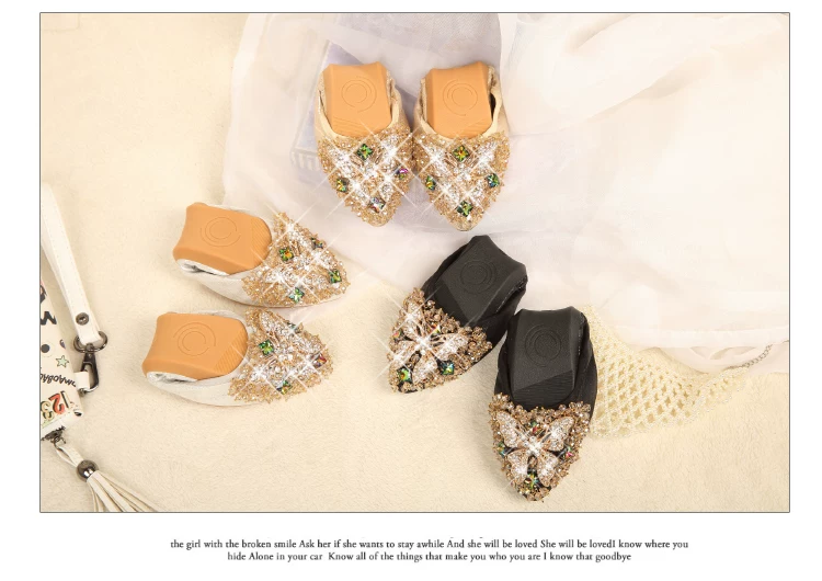 Туфли женские складные, балетки, заостренный носок, со стразами, бе...