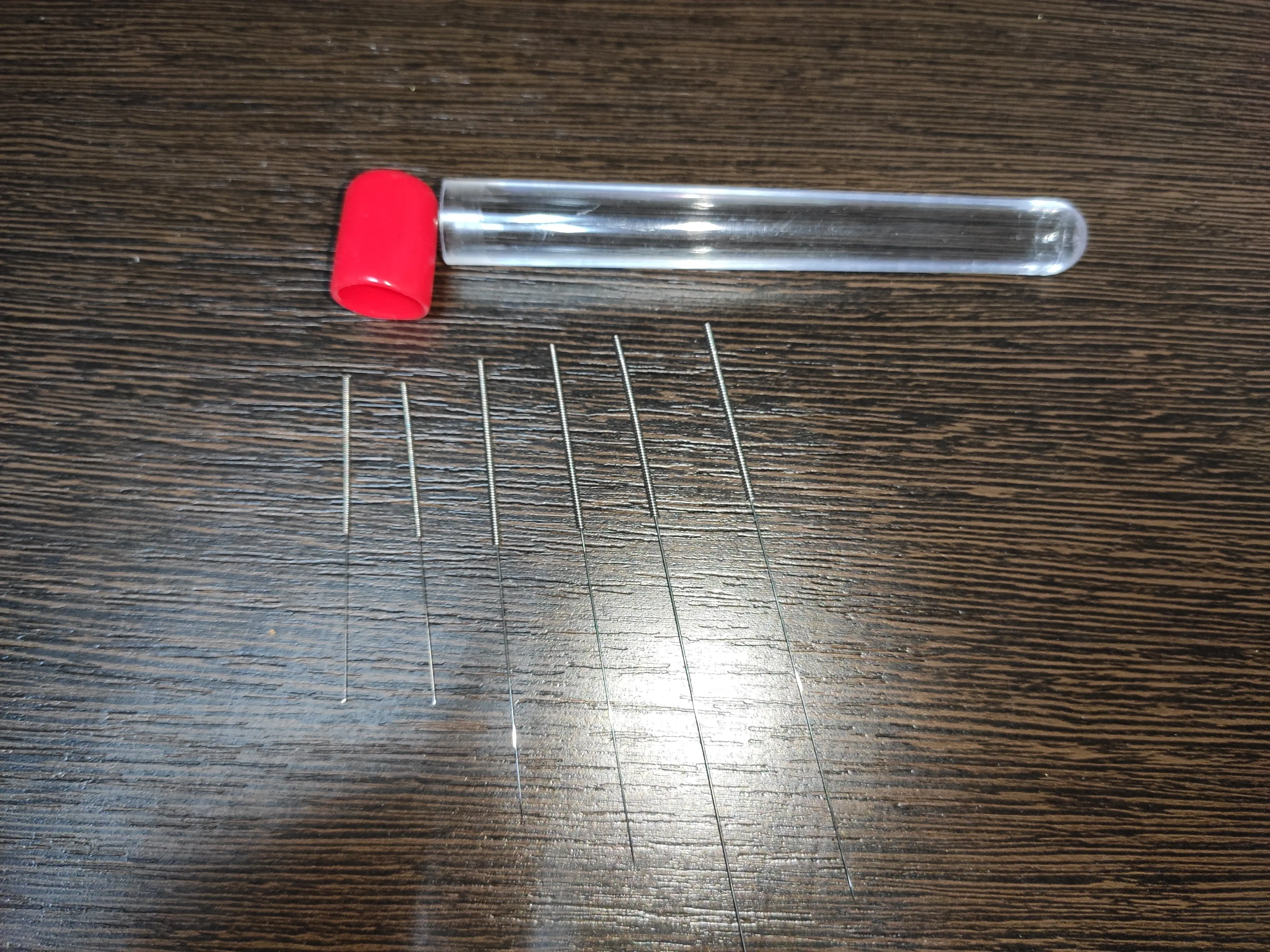 отличный товар, все как в описании. иглы разной длины в соответствии с их размером - чем толще игла, тем длиннее. иглы в пластиковой пробирке с резиновым колпачком. с продавцом не общался
