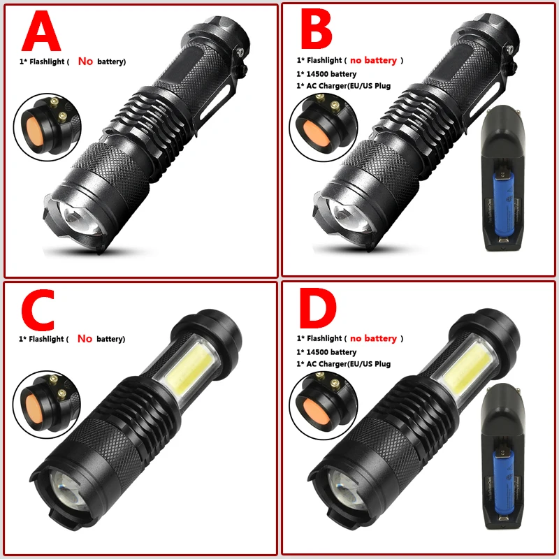 SK68C светодиодный мини-фонарик Q5 + COB Zoom водонепроницаемый алюминиевый 4 режима фонарик использование 14500 AA батарея вспышка свет кемпинг
