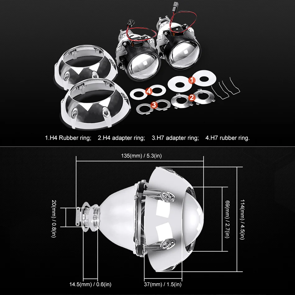 Характеристики: Bi-xenon проекторы объектива, предлагаем как дальнего, так и ближнего света функции.