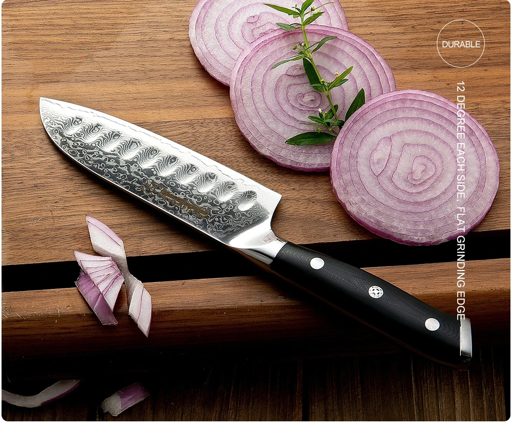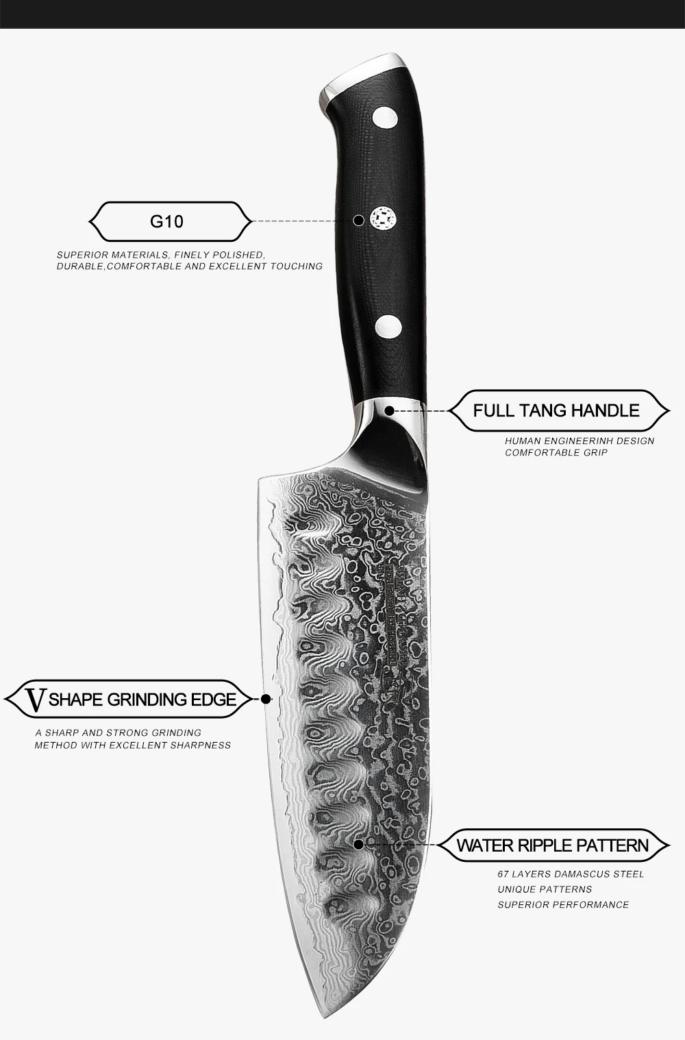 Японский кухонный нож Santoku vg10, 5-Дюймовый Нож из дамасской стали, 67 слоев, Высокоуглеродистая Сталь, поварские инструменты с подарочной коробкой