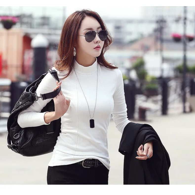 Базовая водолазка из 90% хлопка, белый свитер для женщин, сексуальный облегающий топ на зиму, женская теплая Осенняя рубашка, пуловеры, женский джемпер