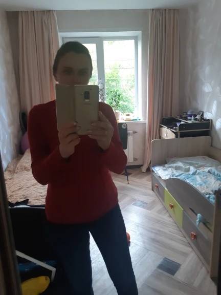 10+++ Водолазка прибыла меньше, чем за 3 недели. Всё соответствует описанию. Хлопка много, приятна к телу. Красный отдаёт оранжевым. Взяла 3ХЛ на свой Л. Сидит хорошо, не в оптяжку, рукова верной длины. Возьму в другом цвете.