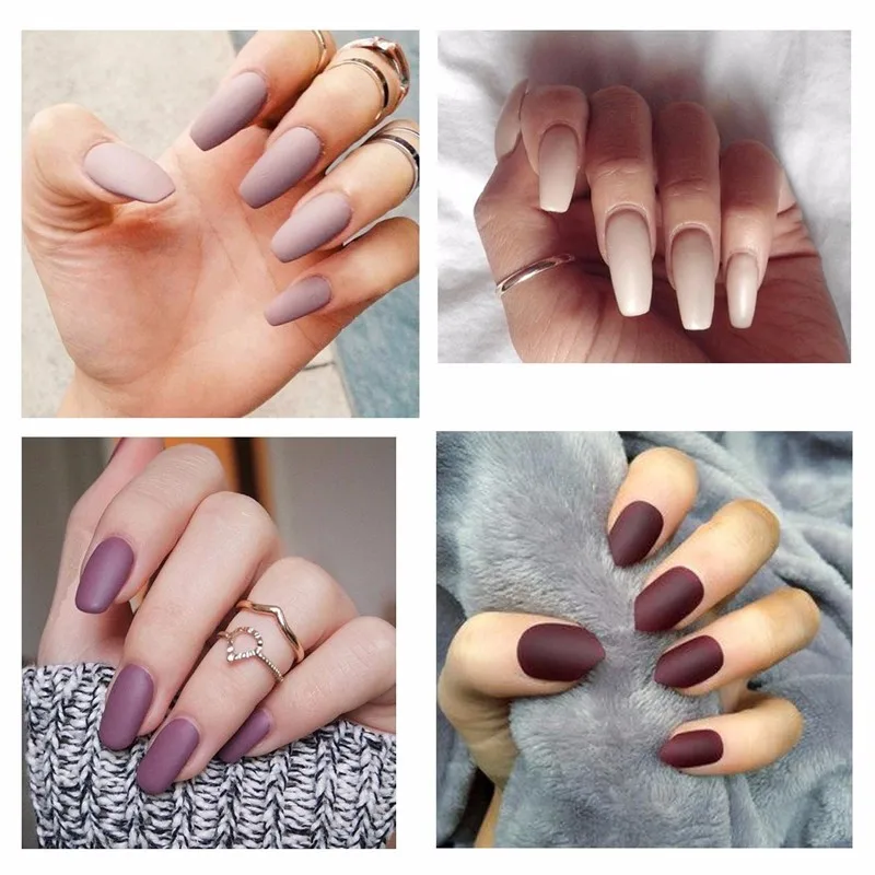 -5.Нанесите матовое верхнее покрытие, которое придаст ногтям матовый эффект, а затем закрепите УФ-лампой или светодиодный Ной лампой.