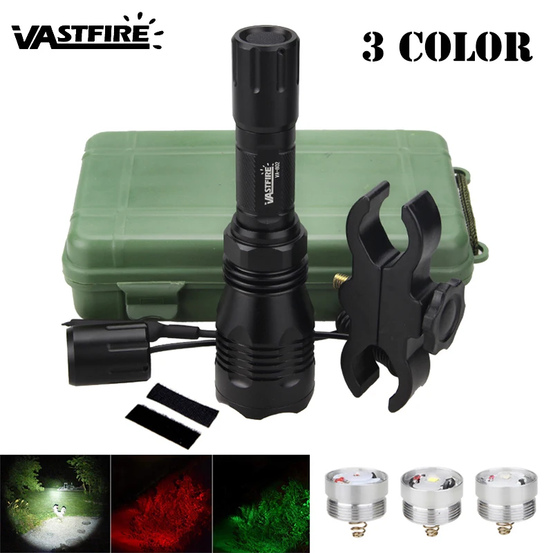 VASTFIRE L2 белыйT6 зеленыйXPE красный охотничий фонарь наружный водонепроницаемый светодиодный тактический фонарь + крепление для прицела + пульт дистанционного управления