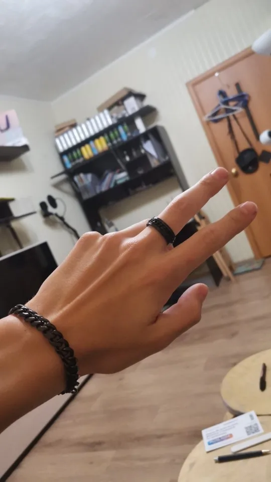 Маленькая черная цепочка сделана из стали. Супер кольцо! Спасибо. Спасибо. Сроки поставки соблюдены