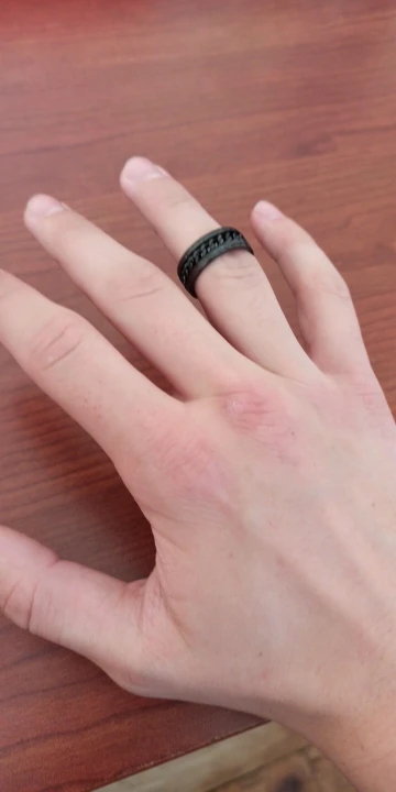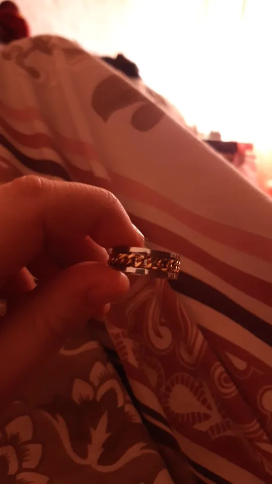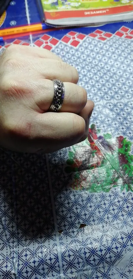 Чудесное изящное кольцо, очень красивое и приятное в носке. Любимый с первого взгляда. Большое спасибо. П. S. Центральная часть вращается, поэтому ее можно использовать как вещь, чтобы отвлекать или развлекать себя и охладить (как некоторые делают, когда ласкают четки; Просто очень неожиданная связь).