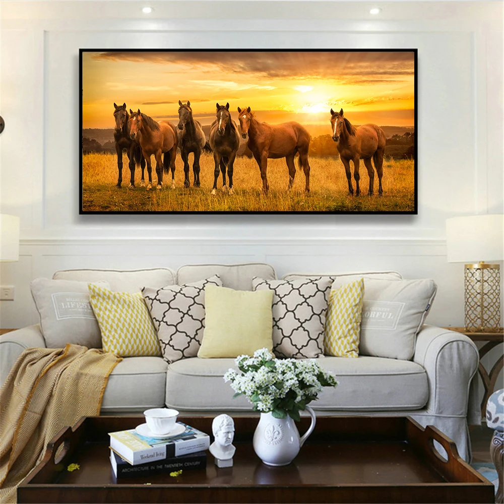 Живопись с лошадью, настенные художественные принты, Постер С закатом животных, холст, большие настенные картины для гостиной, украшение для дома и офиса