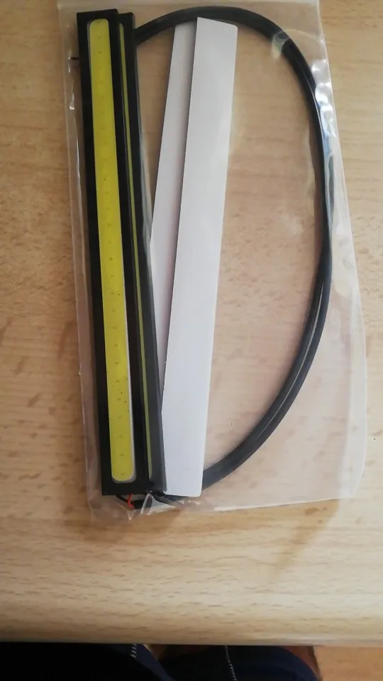 Доставка в Киев 20 дней Новой почтой в сборной посылке. Соответствует и описанию и фото продавца, точные размеры 1,5см * 17см; длина кабеля 29см, кабель хлипковат, качество изготовления среднее, но за такую сумму нормальное (1,15$ пара). Светят очень ярко, слепят; подложка металл; двухсторонний скотч в комплекте. Продавцу спасибо! Рекомендую