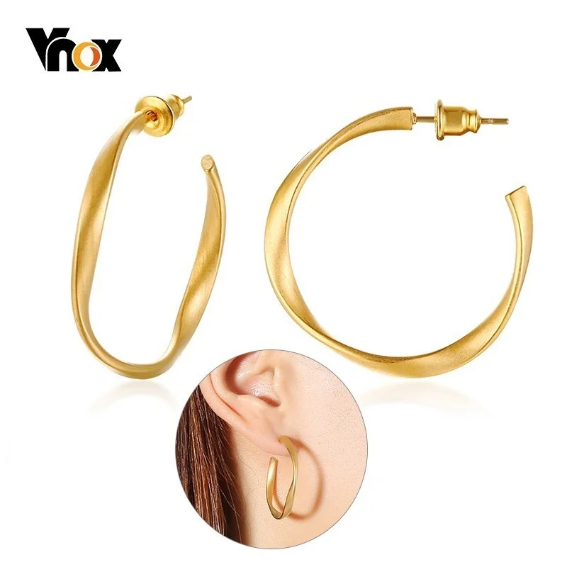 Женские витые стальные серьги-кольца Vnox, золотого цвета, с матовой поверхностью