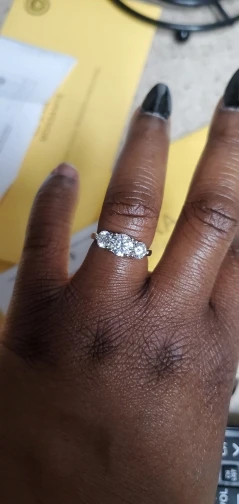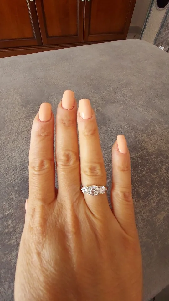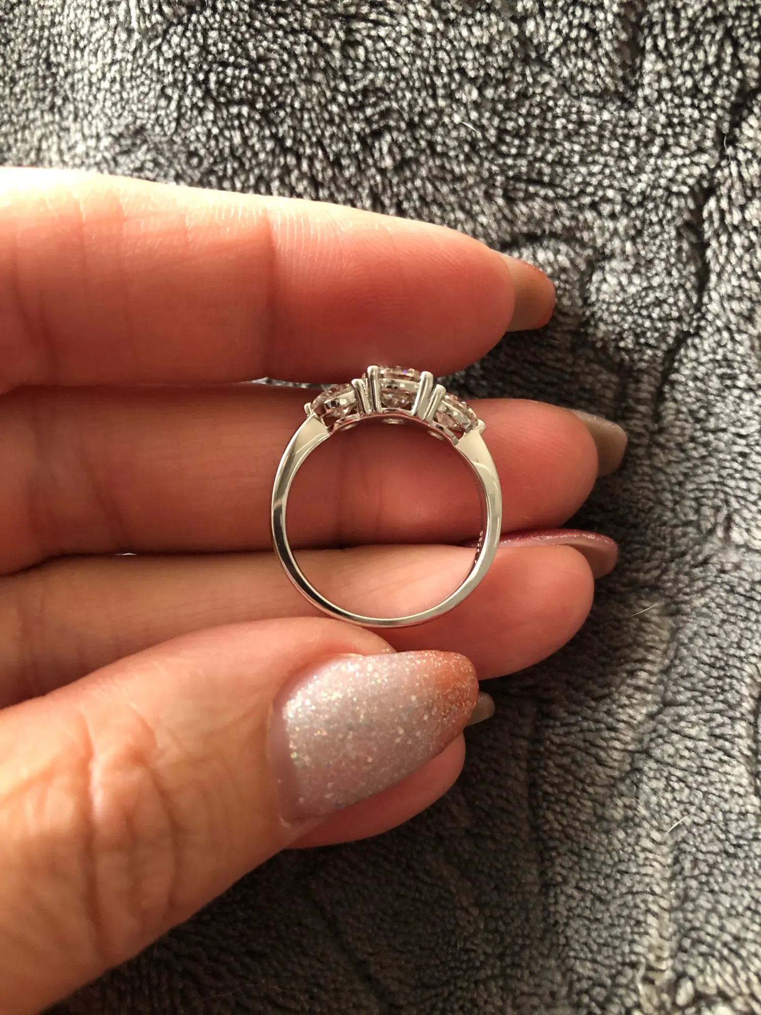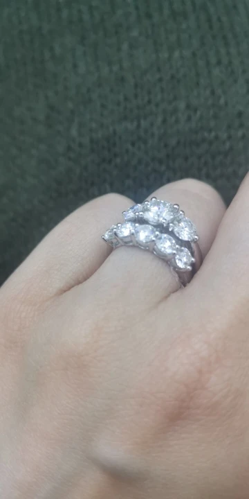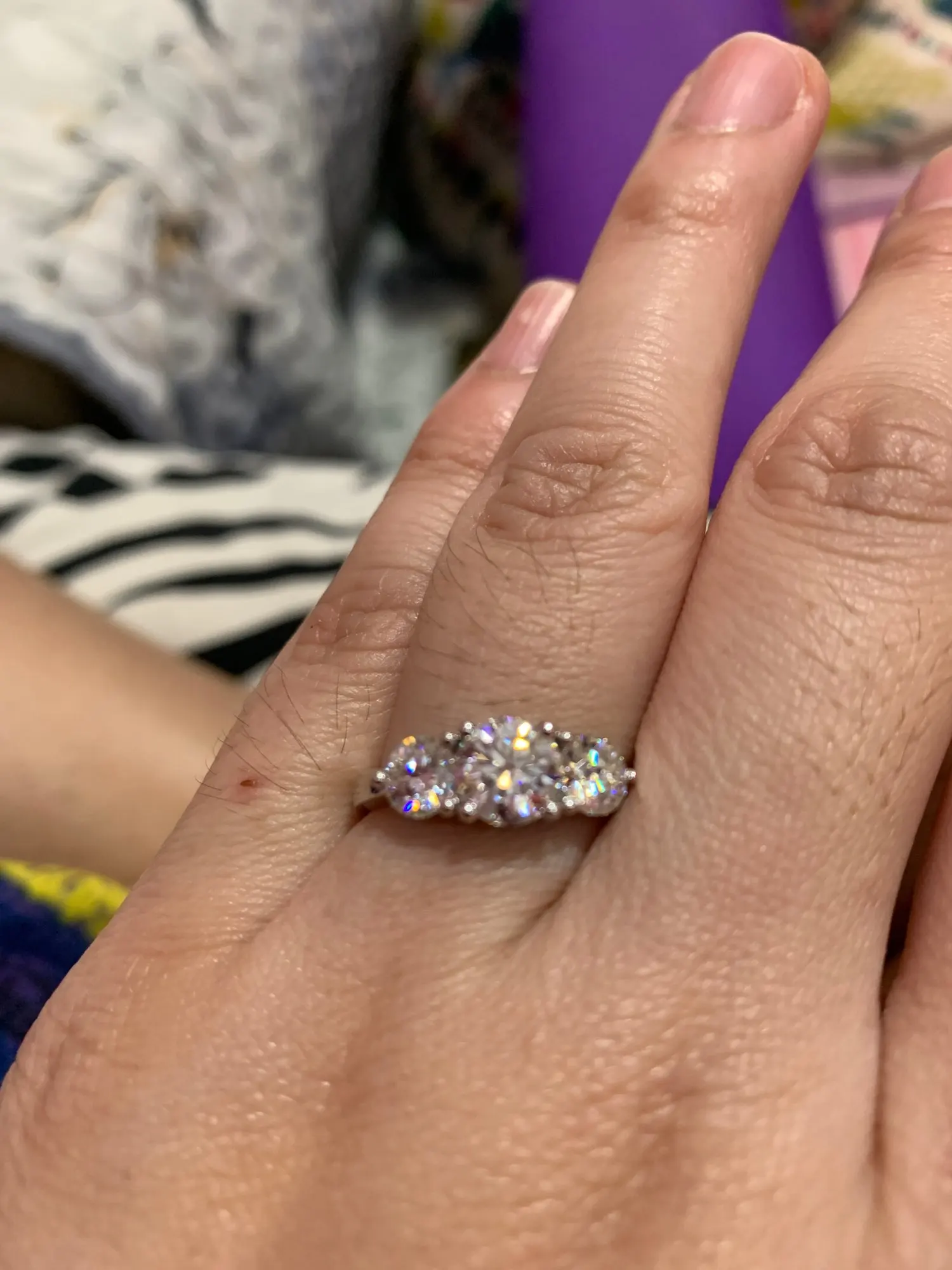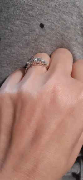 Кольцо приятное, моиссанит очень сверкающий, особенно под светом (натуральный и искусственный). Однако, мне не нравится металл, из которого сделано кольцо. Я получил кольцо 17 дней назад, я носил его 24/7 и до сих пор он не менял цвет и не поворачивал мой палец зеленым. В целом, я думаю, что кольцо Стоит своей цены.