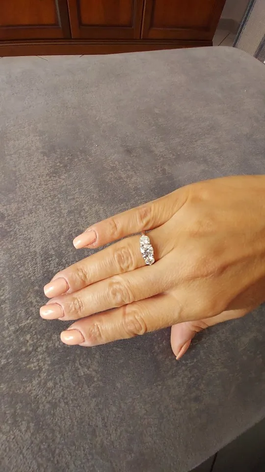 Кольцо абсолютно красивое и прибывает в красивую презентационную коробку и сертификаты как для центрального камня, так и для двух акцентов. Однако доставка очень медленная, вероятно, самая длинная, когда мне было нужно ждать, пока товар прибудет из любой точки мира. Если вы не возражаете против долгого ожидания, что, вероятно, связано с пандемией, продавец является легичным, и кольцо выглядит потрясающе по своей цене.