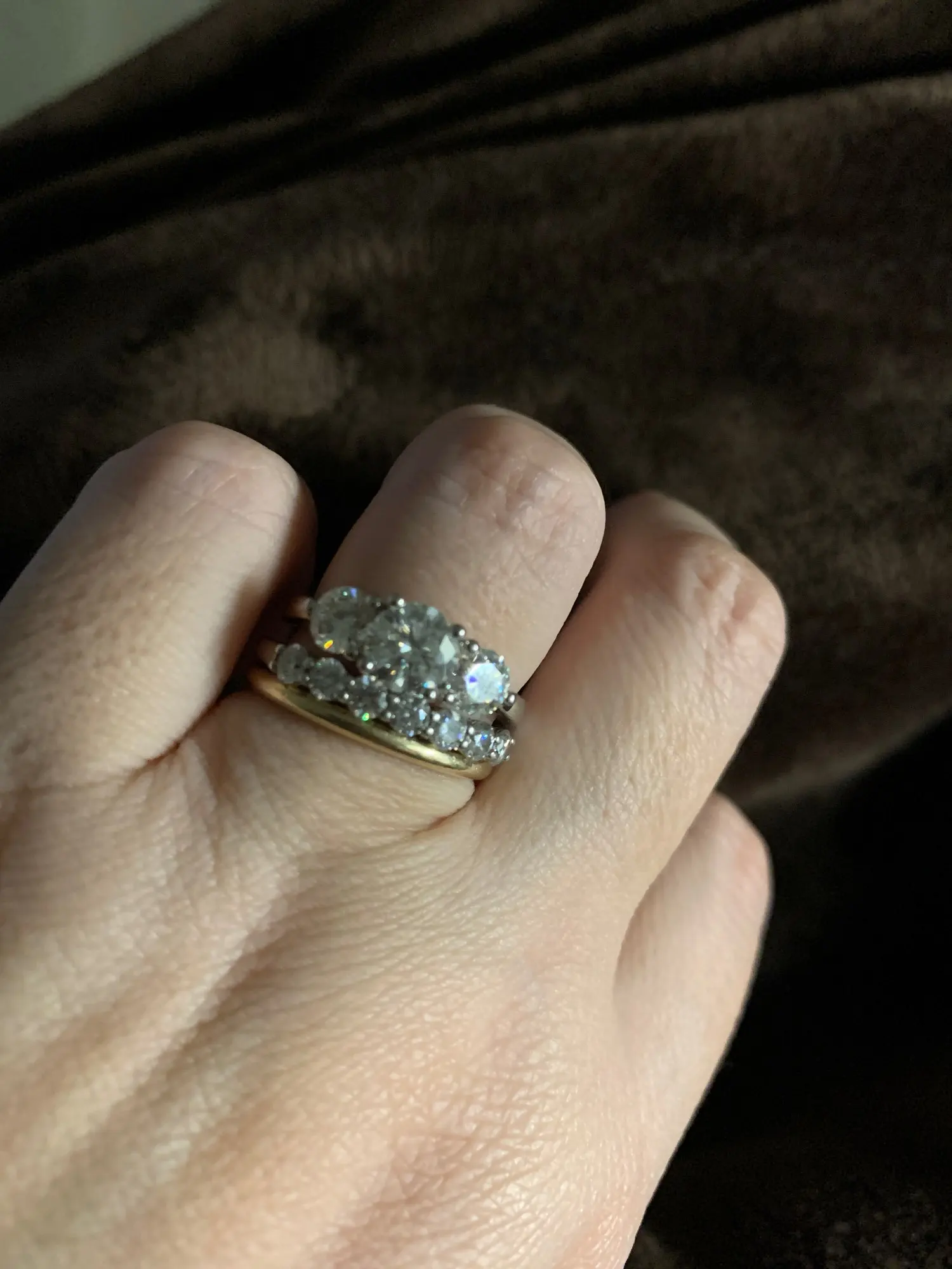 Очень красивое кольцо! Сравнить блеск муассанитов можно только с бриллиантами!!! Берите не пожалеете! Почта России конечно заставила понервничать, а именно сортировка давыдково((( посылка зависла там на 5 дней, думали все потерялось, но слава богу моя красота меня нашла. Продавцу спасибо большое за эстетическое наслаждение на моей руке.