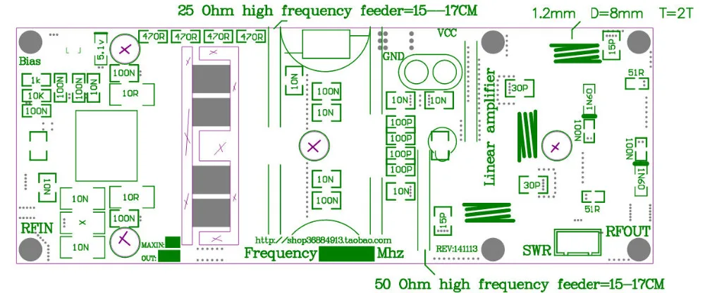 Примечание:MRF186 Старый Б/уЭто все детали, вам нужна diy сваркаВыход усилителя: 80-100 ВтДиапазон воспроизводимых частот 80-120 МГц (вход 1-1,5 Вт) 140-170 МГц (3-4 Вт)Мощность: 24-26 В постоянного тока ток: 5-7 А1: шаги установкиСогласно данным изображения в соответствии с сваркой, монтажными чертежами.2: шаги отладки: сварка завершена, установлен радиаторВо-первых, не устанавливайте MRF186 (XRF186)Для подключения источника питания 24V регулировки напряжение смещения 3,5 V, а затем отсоедините источника питанияУстановите MOS power tube MRF186 (XRF186), обратите внимание на отключение электрического паяльника, паяльника при сварке с использованием отработанного тепла, предотвращая электростатическое поломку МОП силового транзистора3: Подключите измеритель мощности, макет нагрузки, сначала включите питание, Отрегулируйте ток, 200-800 мА, 400 мА является лучшим4: тест питание подключено к пуш-ап, FM Максимальная 1,5 Вт, максимальная VHF 4W FM и УКВ, основные не настраивайте, повышает UHF макс 7-8 Вт, UHF регулирует переменный конденсатор для получения оптимальной выходной мощностиПредупреждение: вход Максимальная FM антенна VHF 1,5 Вт, 4 Вт, максимум 7-8 Вт Выход UHF, максимальная 100 Вт, Выход отключения холостого хода, защита от короткого замыканияЗапрещено незаконное использование усилителя мощности, незаконное использование не имеет ничего общего с другими
