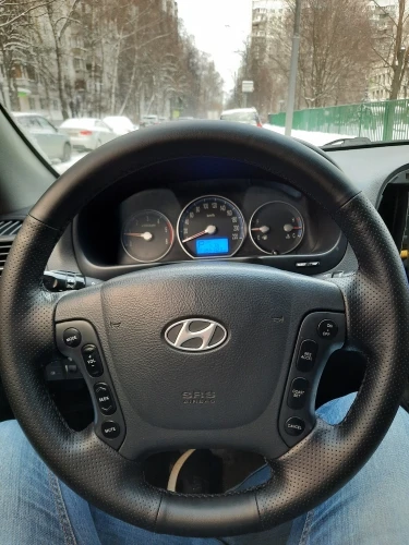 Черный чехол рулевого колеса автомобиля из искусственной кожи для Hyundai Santa Fe 2007 2008 2009 2010 2011 2012