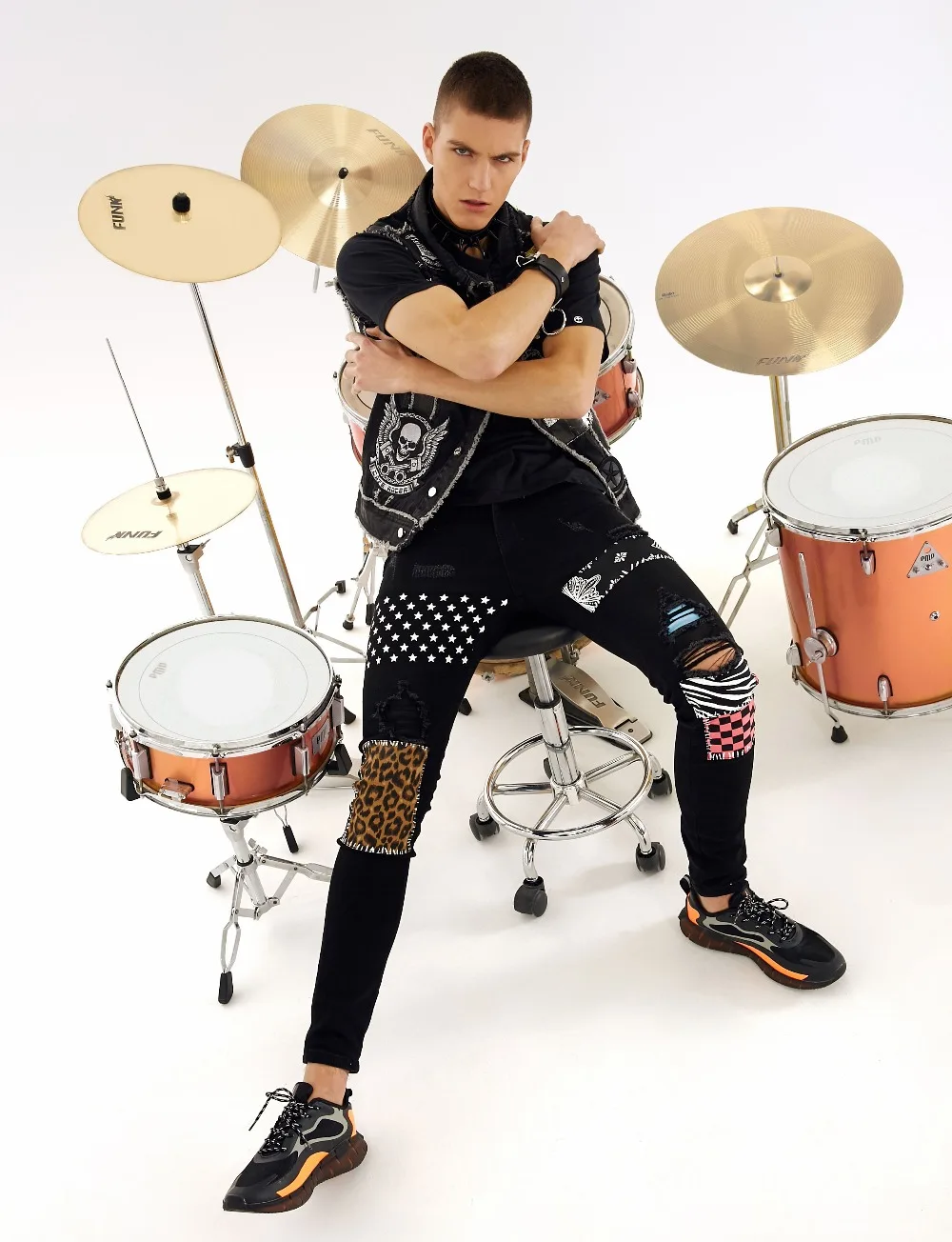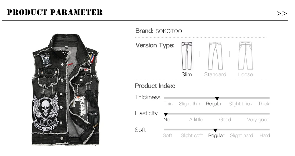 Мужской джинсовый жилет, рваный жилет с вышивкой черепа, приталенна...