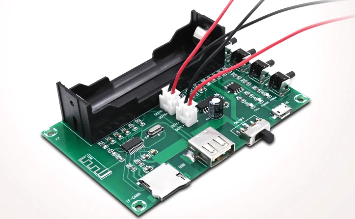 Инструкция по эксплуатации:1. Сначала необходимо установить аккумулятор TR18650, обратите внимание, чтобы отличить полярность! (Товар не содержит батарей, вам нужно купить его самостоятельно.)2. К динамику подключены два провода, красный-положительный, черный-отрицательный.3. Вставьте sd-карту с файл в SD Разъем карты или вставить u-диск с песню прикреплен специальный интерфейс USB. (Также подключается по Bluetooth, но необходимо включить, прежде чем подключиться к Bluetooth)4, откройте переключатель, он будет автоматически чтения sd-карты или поддержка карт флеш-накопителей, и начать воспроизведение песни, если sd-карту и U диска установлены в одно и то же время, по умолчанию он будет считывать файлы sd-карты и воспроизвести их.5, ① кнопка-это кнопка переключения плейлиста, вы можете выбрать, чтобы играть песню на sd-карте или U-disk, но плейлист Bluetooth не может быть переключен, вам нужно удалить SD-карту и U-диск.6, ② кнопка-это кнопка play pause, нажмите pause, затем нажмите play еще раз.7, ③ кнопка-это кнопка переключения песен, которая также является кнопкой громкости. Короткое нажатие, чтобы воспроизвести предыдущий вызов, длинное нажатие, чтобы увеличить громкость.8, ④ кнопка-это кнопка переключения песен, которая также является кнопкой громкости. Короткое нажатие, чтобы играть следующую песню, длинное нажатие, чтобы уменьшить громкость.Посылка содержание100% Фирменная НовинкаЦифровая плата усилителя мощности Bluetooth, 1 шт.