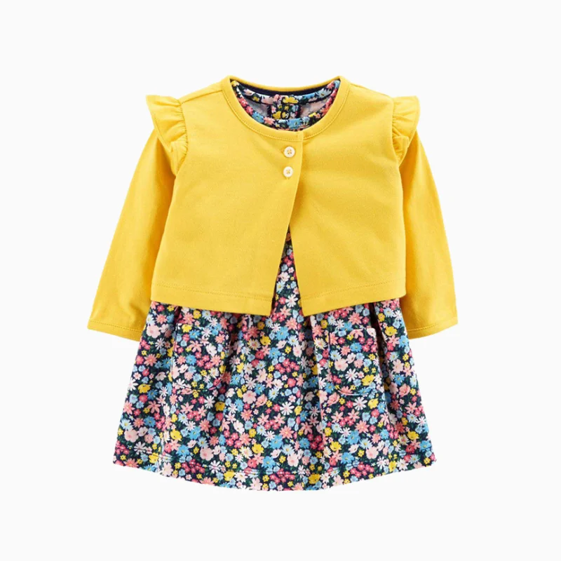 Одежда для маленьких девочек 2020 весеннее платье для маленьких девочек пальто с длинными рукавами + боди с короткими рукавами комплекты одежды из 2 предметов для маленьких девочек