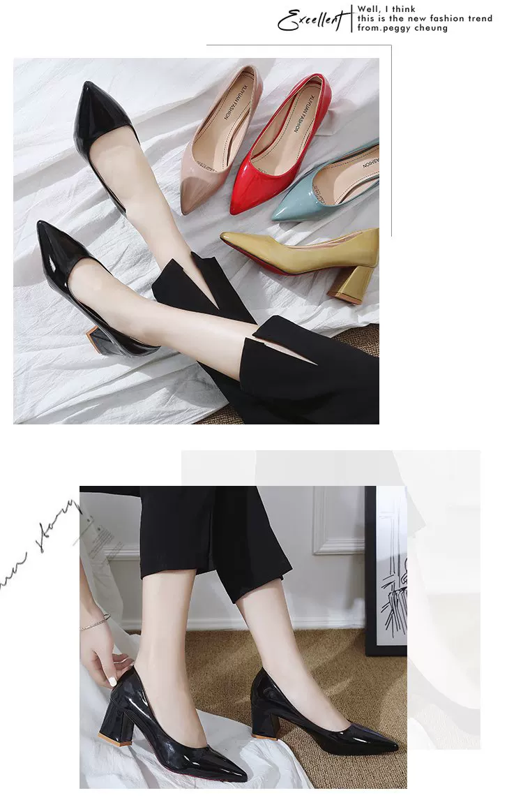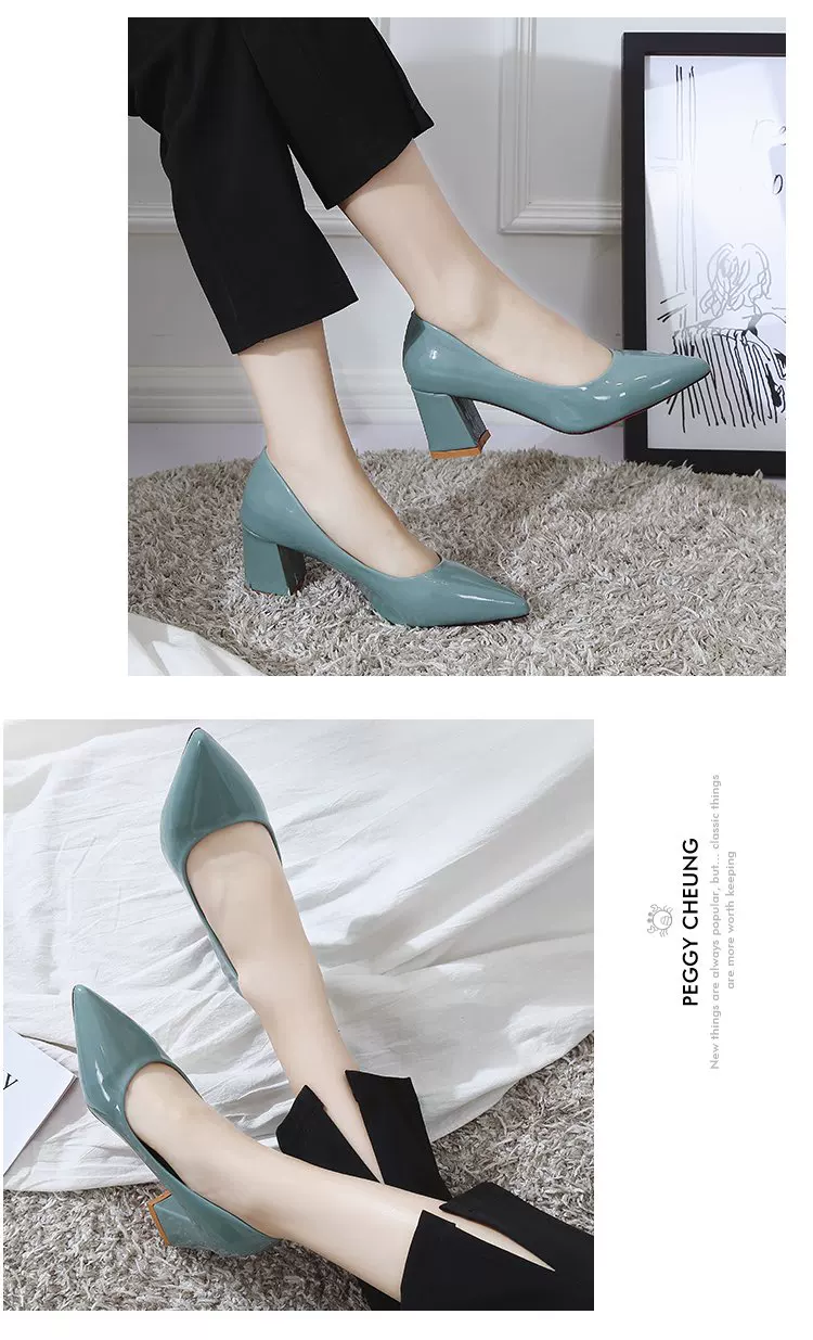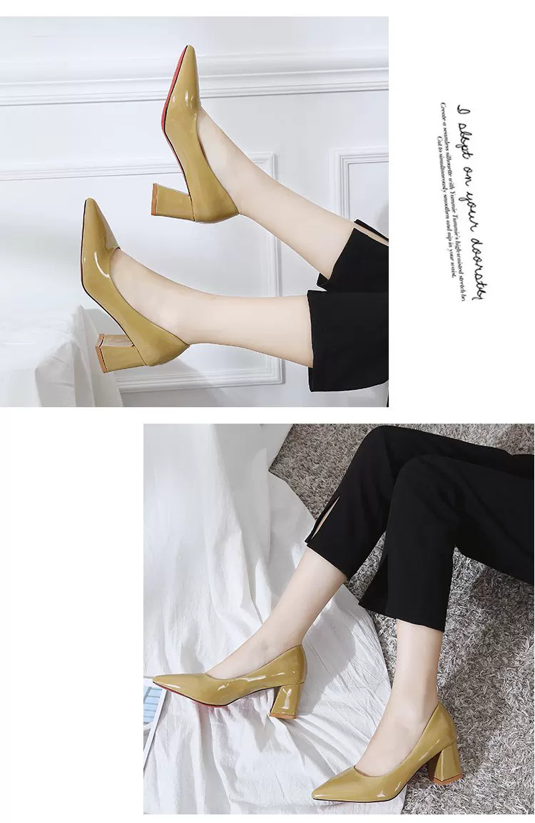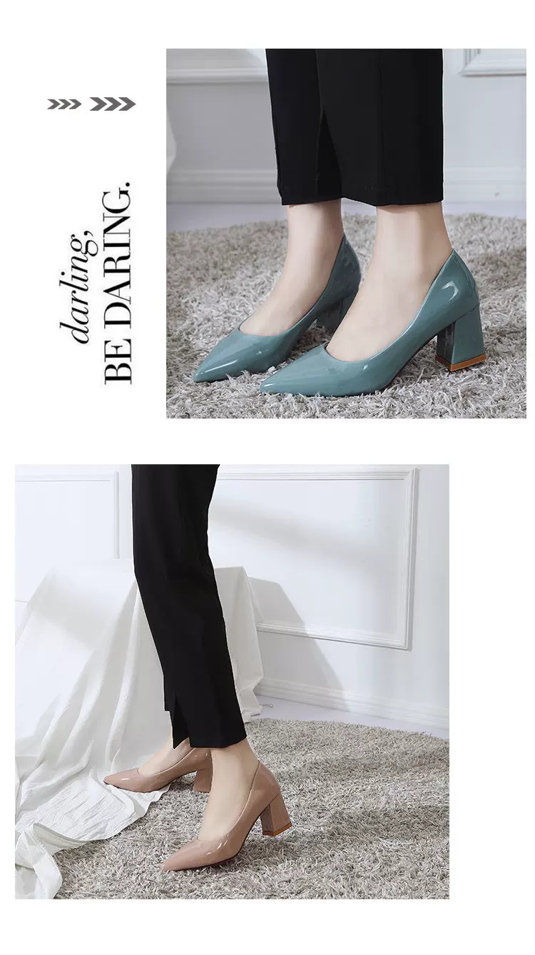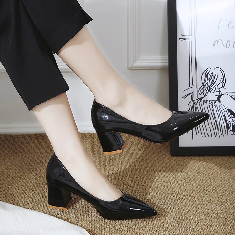 Женские туфли с острым носком, классические простые туфли на толстом высоком каблуке, 2021