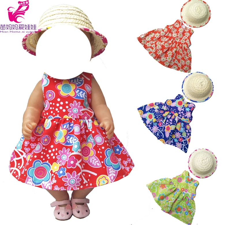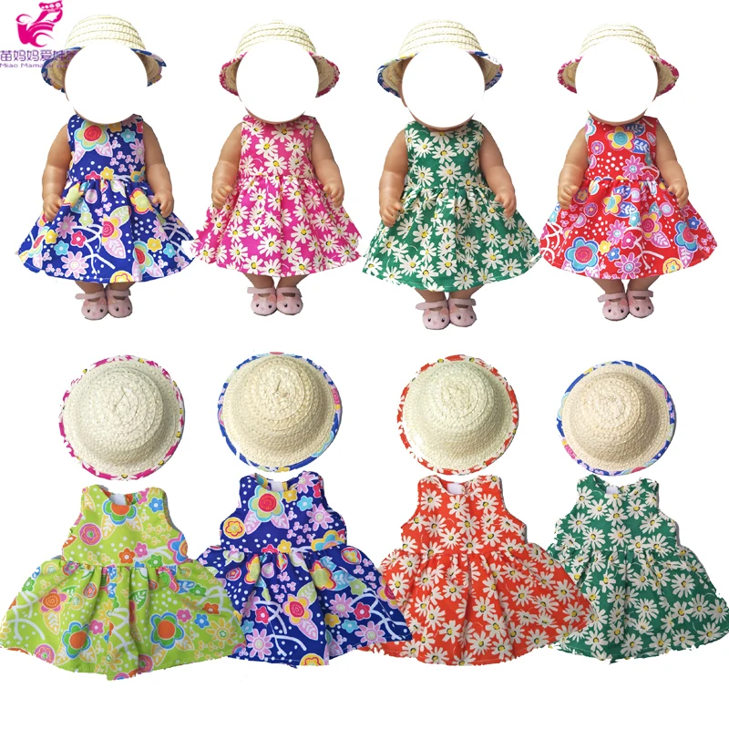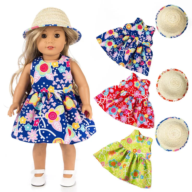 Для куклы 43 см, летнее Гавайское платье, соломенная шляпа для куклы 18 дюймов, праздничное платье, шляпа, игрушки для девочек, подарок