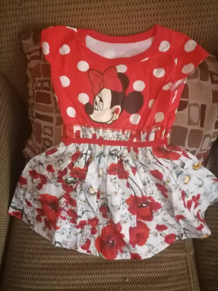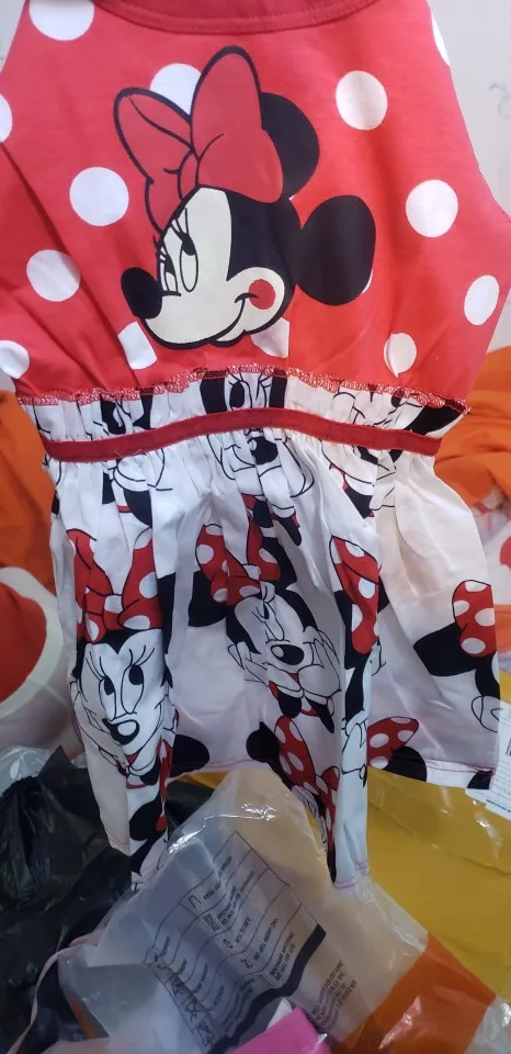Платье для девочек, Новинка лета 2022, хлопковое платье для девочек с круглым вырезом без рукавов, платье в крупный горошек с коротким рукавом и Минни-Маус