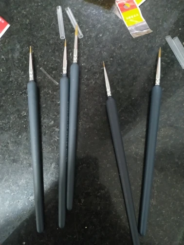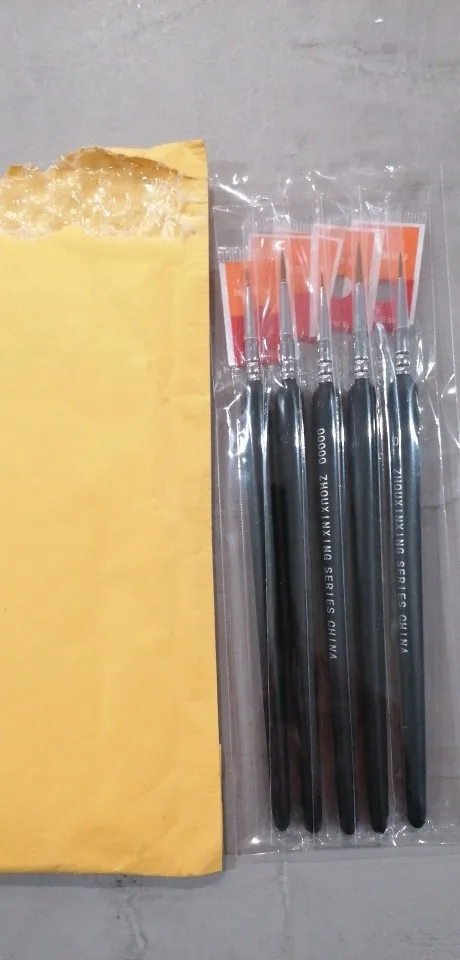 Этот небрендовый черный набор кистей находится в самом первом заказе, который я когда-либо получил от Aliexpress! Заказ прибыл на хорошую неделю, прежде чем ожидать (24 дня, в отличие от 30). Я пользовался маленькими кистями в течение многих лет, но никогда ничего такого не было. Они имеют длинную ручку и тяжелую шею, которая, возможно, более эргономично подходит для крошечной работы, которую я часто выполняю. Они напоминают мне о кистях, используемых для нанесения миниатюрных рисунков эмалью. Хотя я еще не использовал их, я, безусловно, доволен этим заказом и этим продавцом!