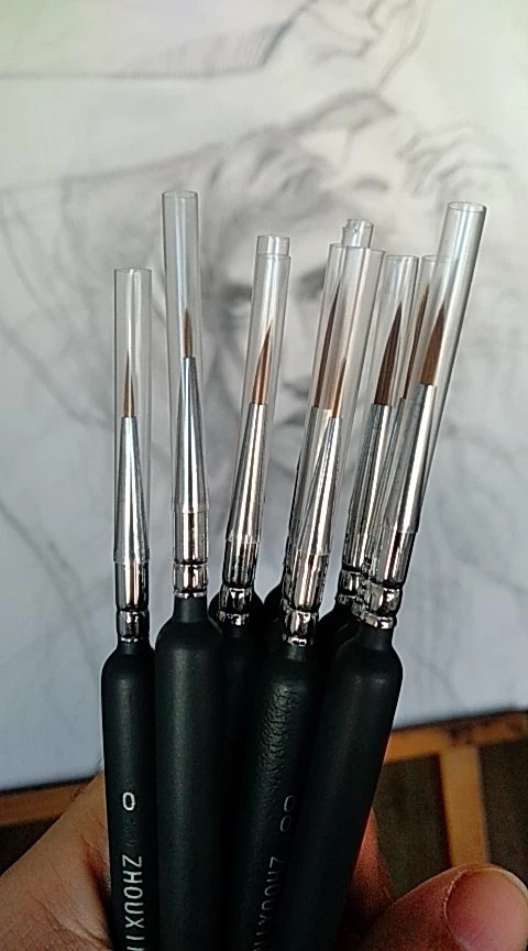 Идеальные кисти для рисования миниатюр. Они более чем приемлемого качества, и хотя их использование было повреждено (хотя они длятся долго), по цене они заменяются на новые.