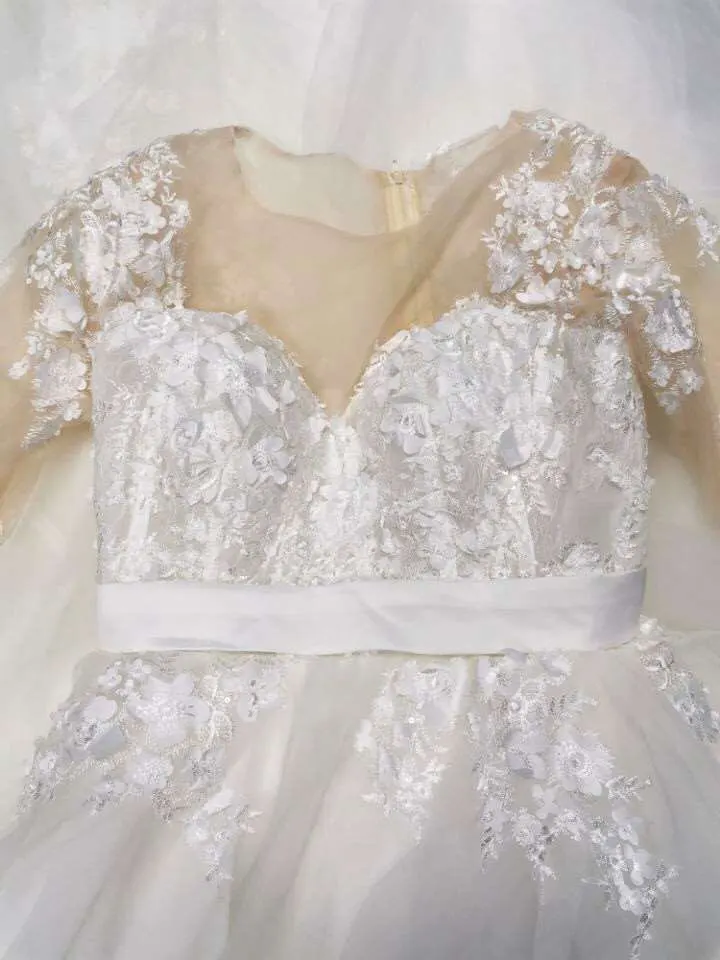 Свадебное платье с длинным рукавом, круглым вырезом и аппликацией и...