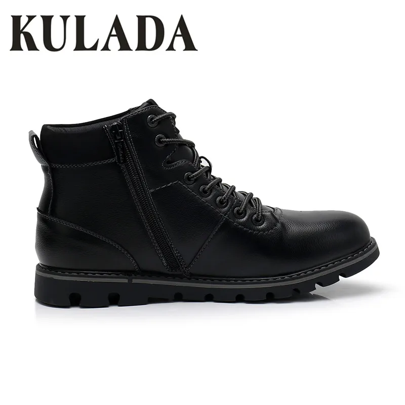 KULADAНовинка; Мотоциклетные ботинки; Мужские уличные рабочие ботинки на толстом меху; Теплая мужская зимняя обувь высокого качества из водонепроницаемого материала; Большие размеры 40-49