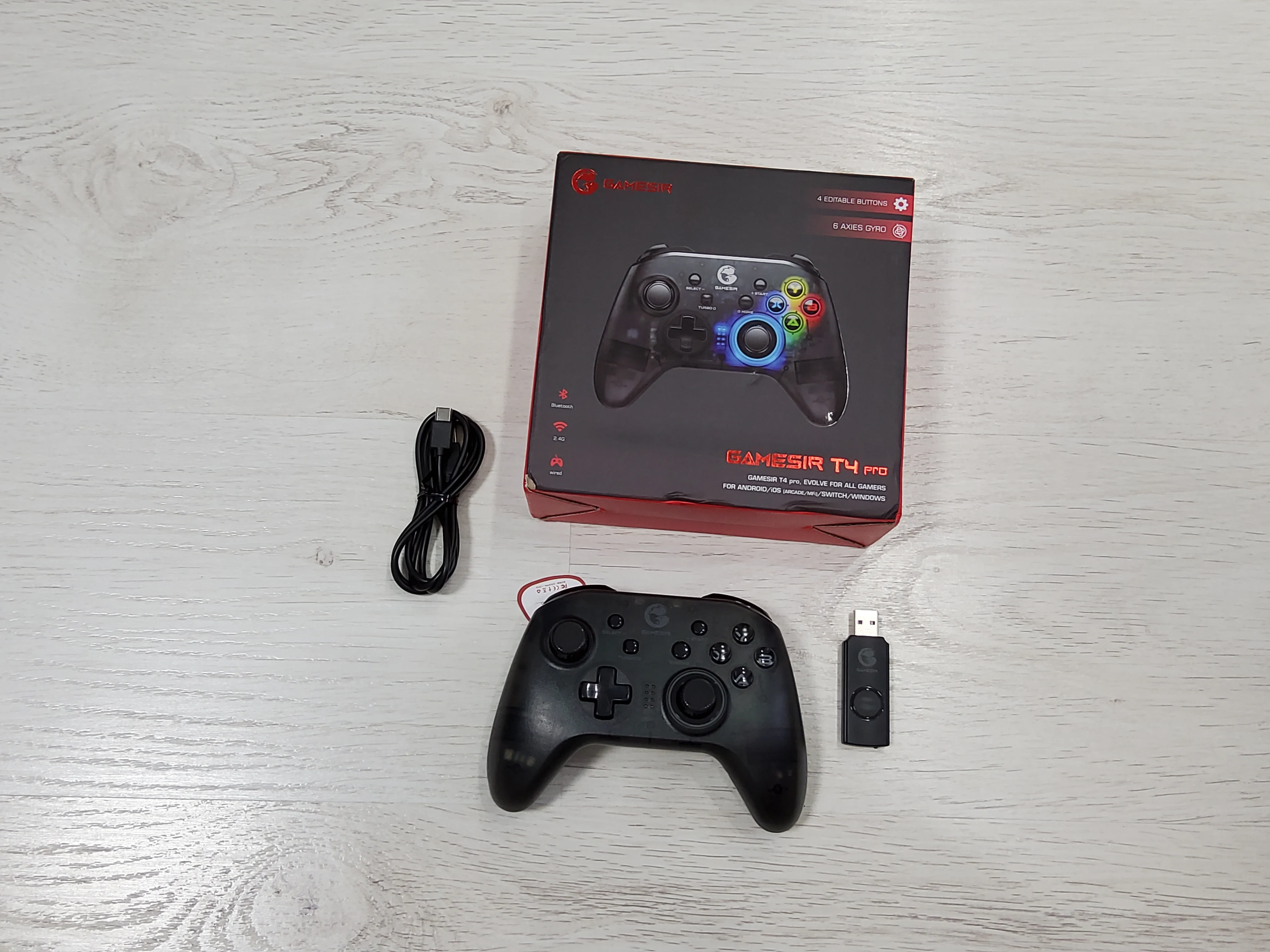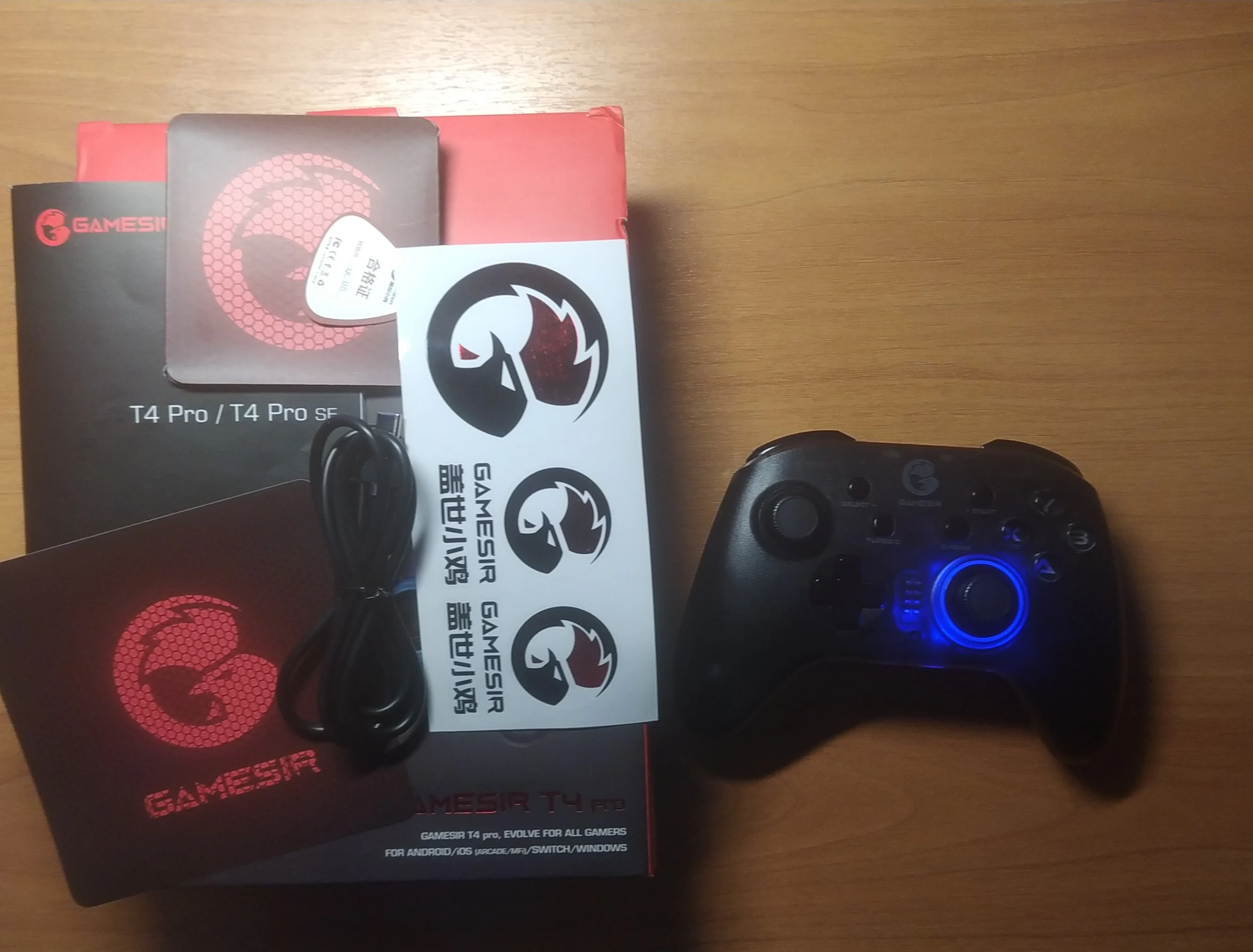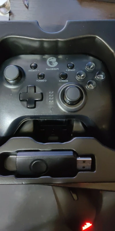 Наверное, лучший геймпад за свои деньги. Классный комплект, даже наклейки с логотипом Gamesir. Жаль, что наша почта помяла коробку и держала посылку месяц, но ожидание того стоило. Геймпад от доставки не пострадал, к счастью.