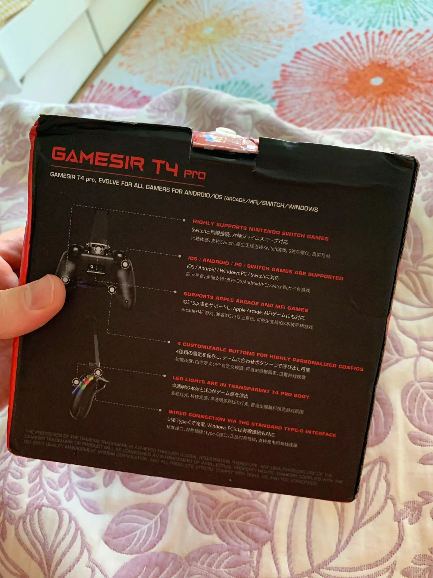этот геймпад что-то с чем то, лучшего я не видел, сконектился со всей техникой у которой есть блютус, в руках лежит отлично кнопки прожимаются четко, есть крепеж для телефона и он отлично держит, пластик вроде как тоже хороший, всем советую