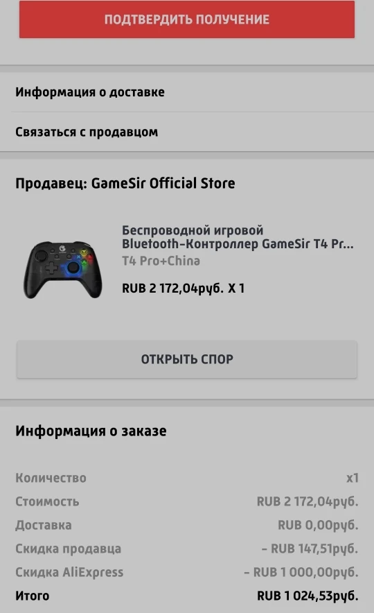 Заказываю уже второй раз. 1 раз все норм, в этот раз коробка очень сильно мятая. Доставка в центр регион России 11 дней. Трек отслеживали полностью. Взял за 1025 рубля (13,7$) с промокодом 11.11 (скрин ниже). За такую цену можно и простить мятую коробку. Джойстик отличный. Долго держит заряд, заряжается через type-с. Очень качественная сборка. Не тарахтит, не люфтит. Хорошая подсветка. Макросы, регулировка вибро. Играть на компе, одно удовольствие