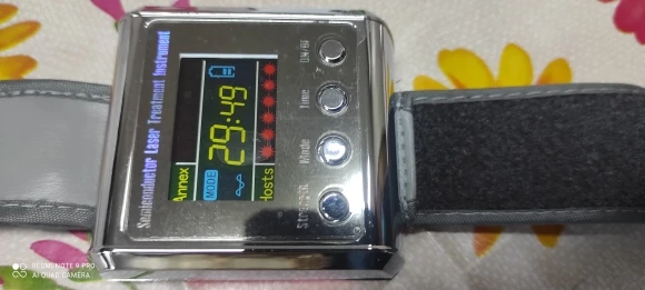 (2) Непрерывно нажмите кнопку «Время/Будильник», чтобы установить время обработки. Время обработки может составлять 10 ~ 60 минут. Обычно рекомендуется 30-минутное лечение, 15 минут для каждой носовой полости. Прибор издаёт жужжащий звук, когда закончит облучение, показывая окончание обработки. Он автоматически отключает лазерный выход и переходит в режим ожидания.