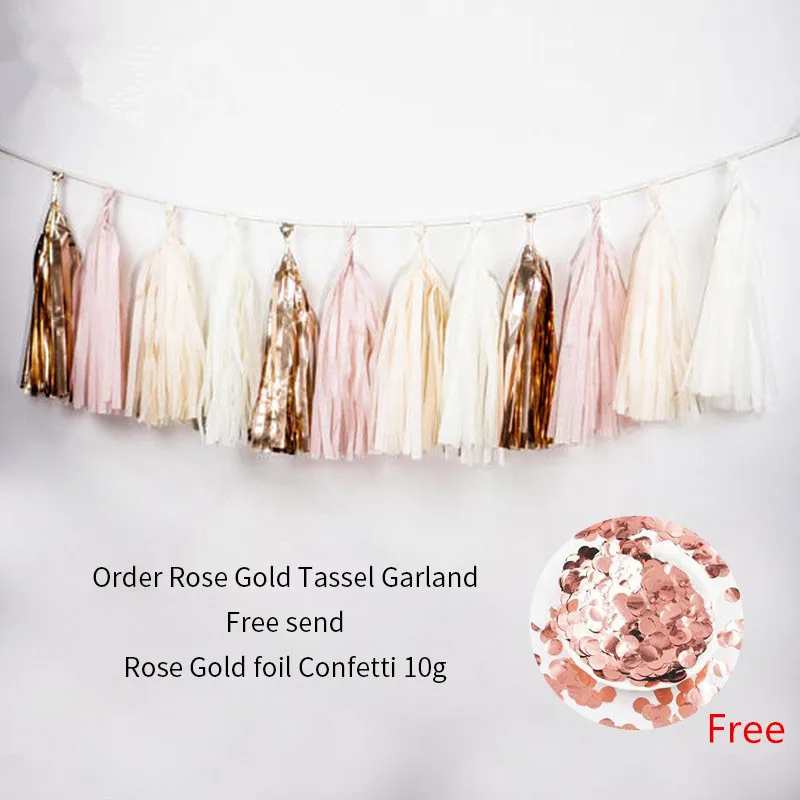 1 комплект, подходит для свадьбы свадебные День рождения Декор, бежевого и розового цвета; Цвет: розовый, золотистый; Тканей Бумага DIY Кисточка Комплект гирлянды Бумага рукоделия