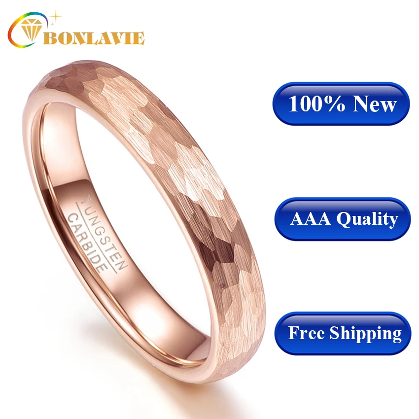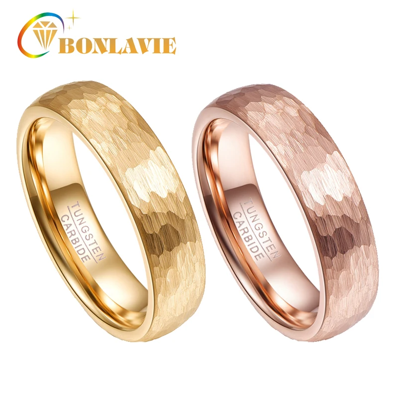 Обручальные кольца BONLAVIE для мужчин и женщин, классические кольца из вольфрамовой стали с геометрической фигурой под золото, розовое красное золото, 6 и 4 мм, Подарочные Кольца для пар